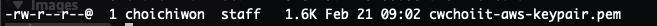 생성하면 .pem 파일을 내려받을 수 있다. 원하는 곳에 잘 내려받으면 끝.