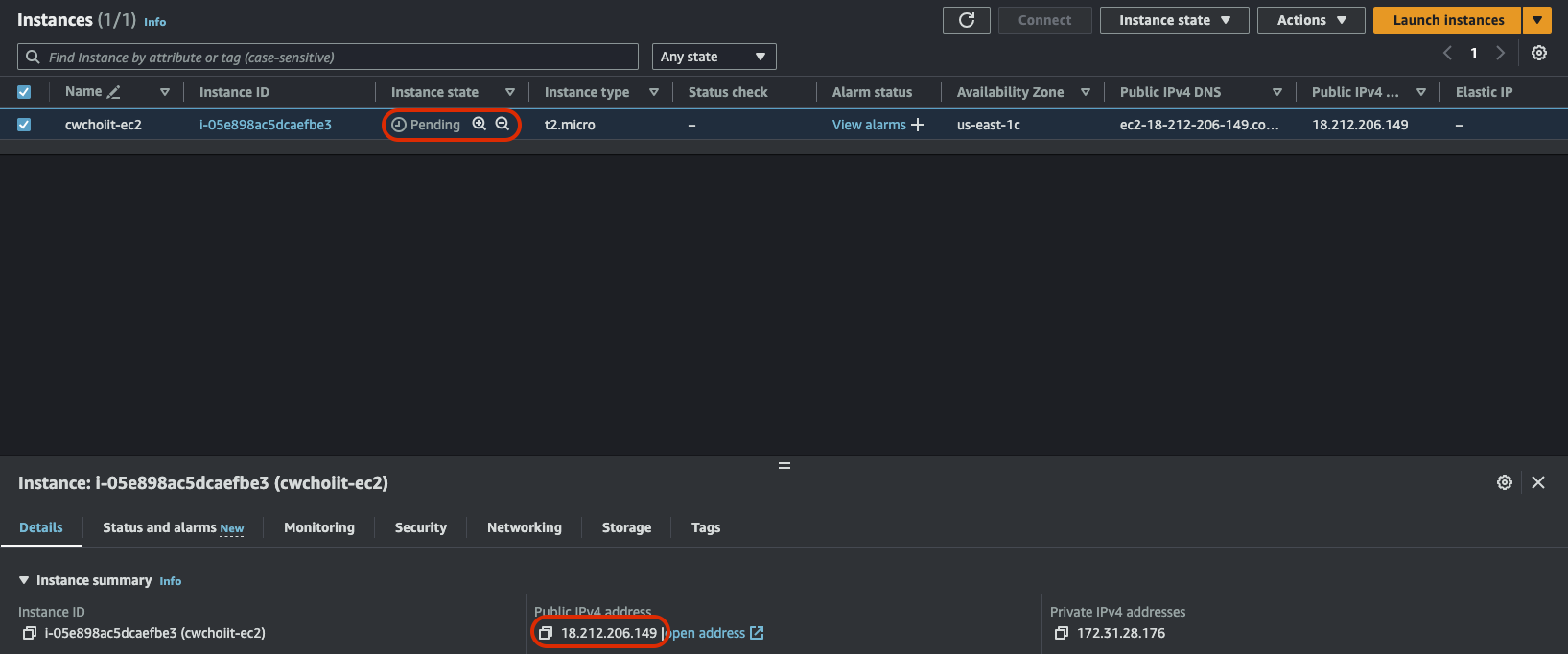 상태가 Pending에서 Running으로 변경되면 이제 Public IP 주소를 복사해서 SSH로 접속해보자.