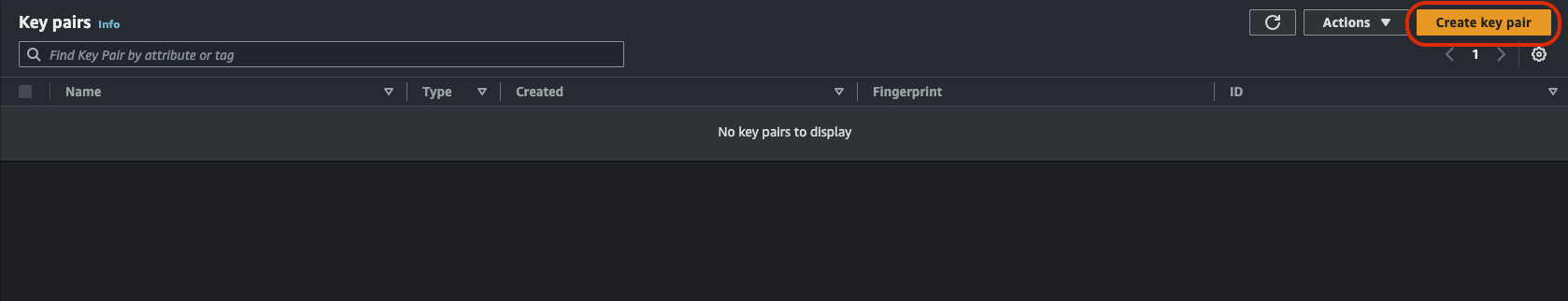클릭해서 진입한 화면 우측 상단 Create key pair 버튼 클릭