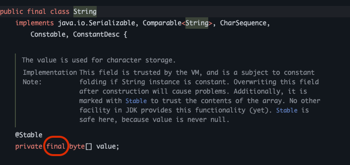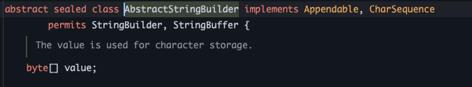 자바가 StringBuilder라는 가변 String을 제공해준다. "어 정말 가변인가요?" StringBuilder 클래스에 들어가보면 String과는 달리 final 키워드가 없는 것을 확인해볼 수 있다.