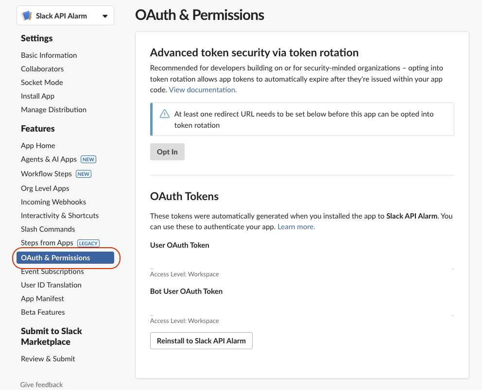만들때 슬랙 메시지가 보내질 WorkSpace를 잘 지정해야 한다.