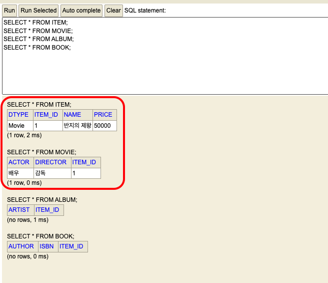 - @Inheritance의 전략을 SINGLE_TABLE로 변경하면 된다.