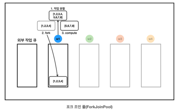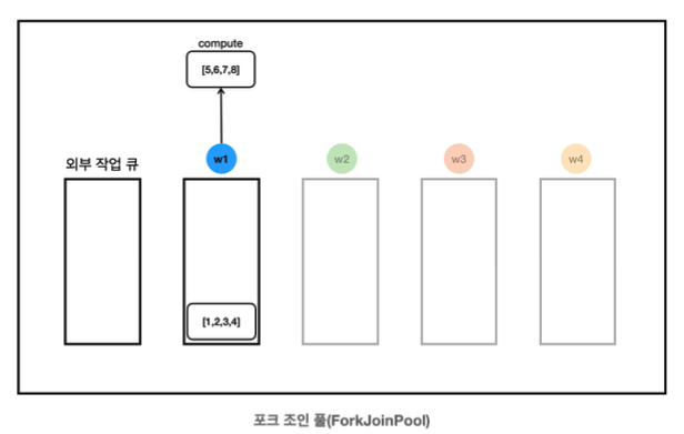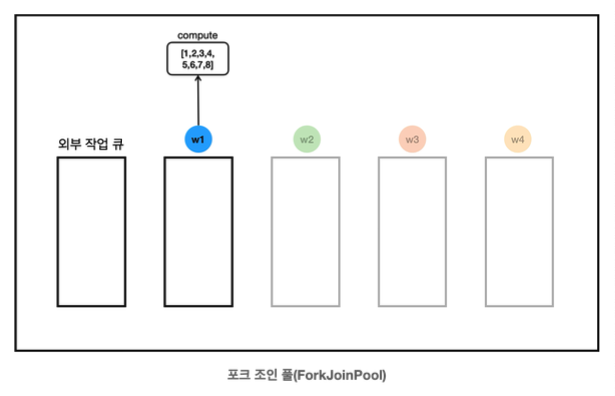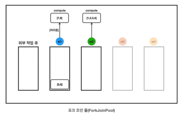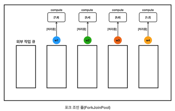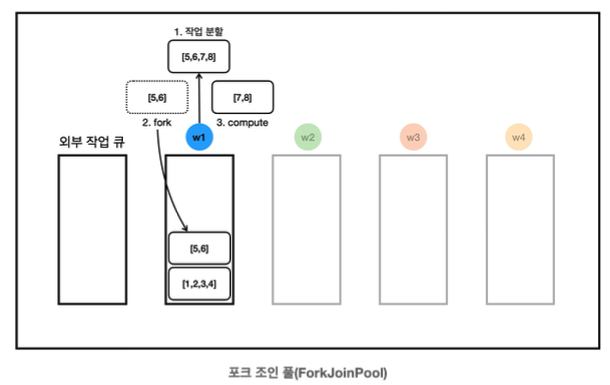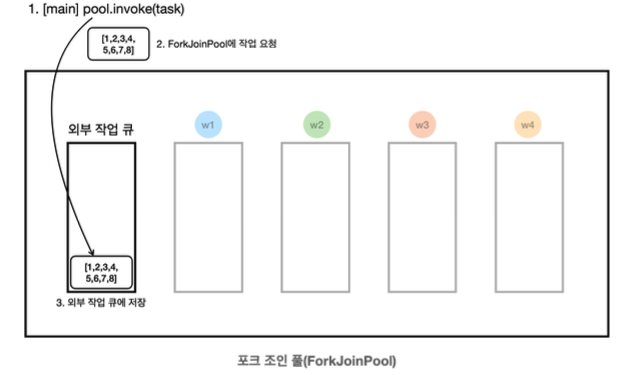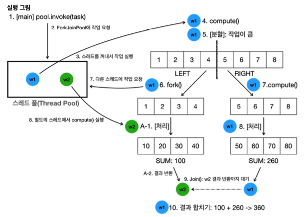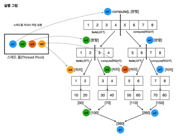 new SumTask(1, 4), new SumTask(5, 8)을 통해 작업을 두 개로 분할한다.