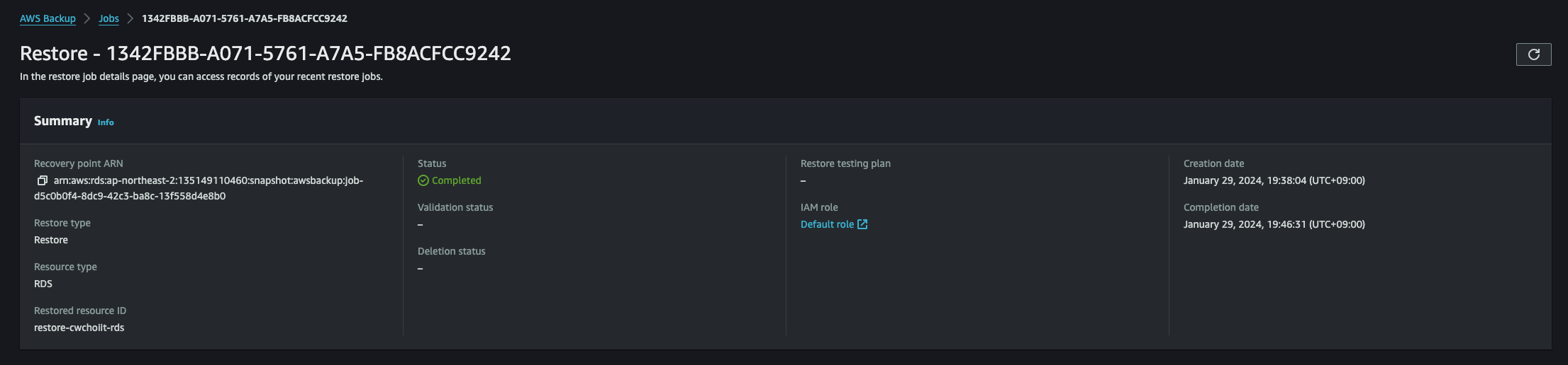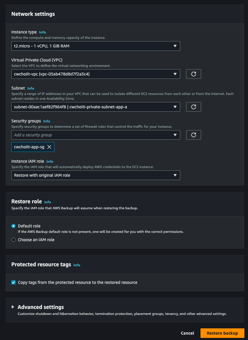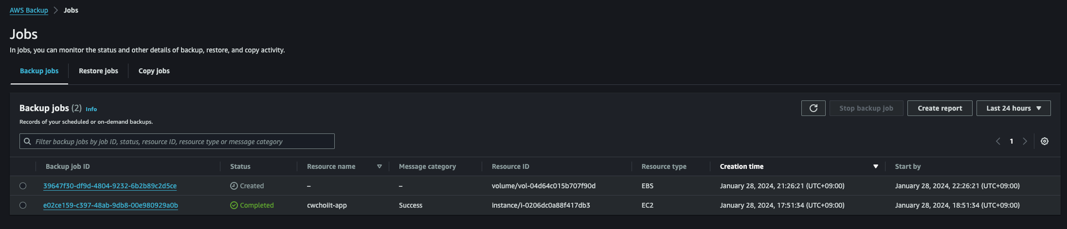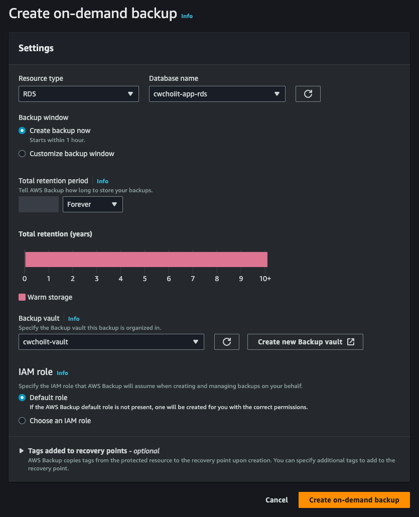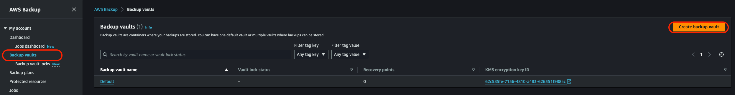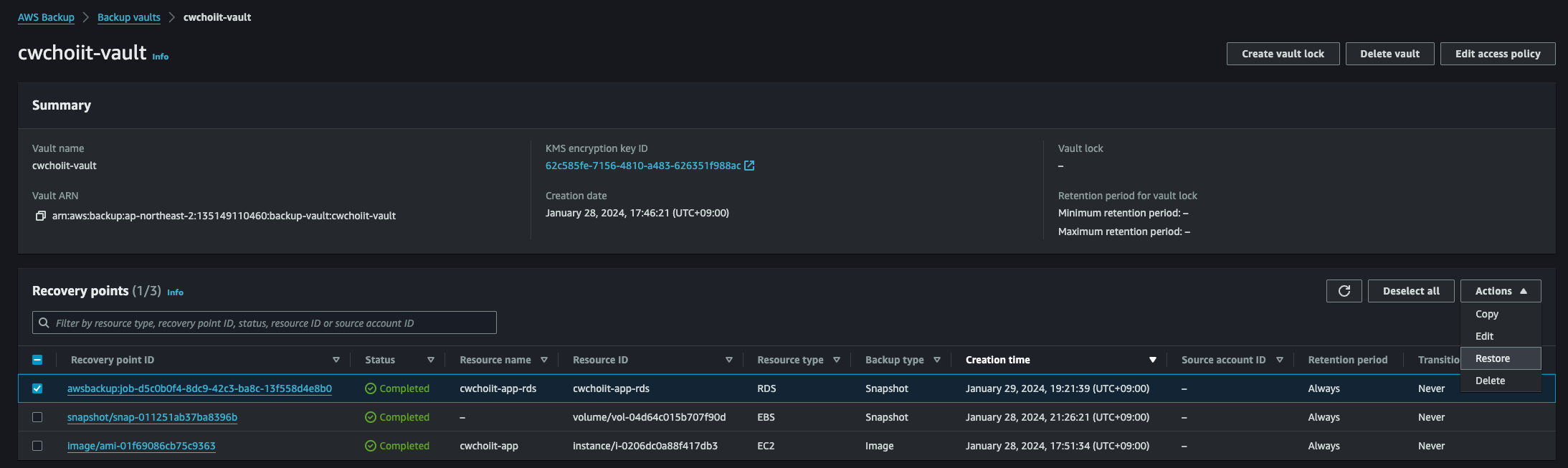 - Backup vault: 위에서 사용했던 vault