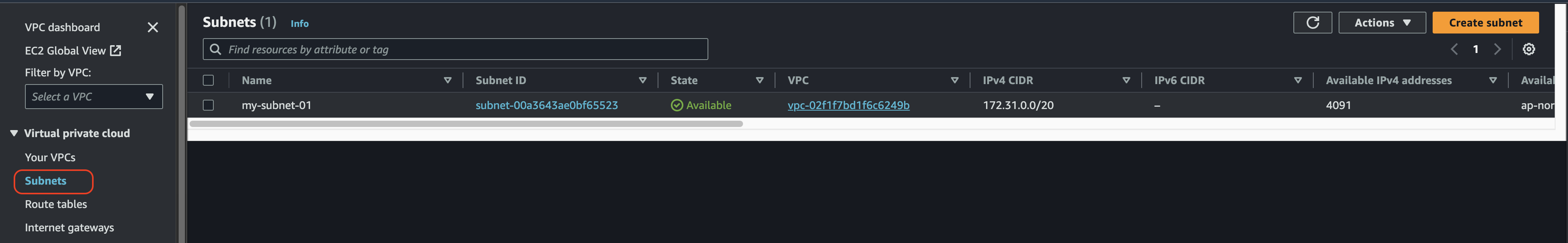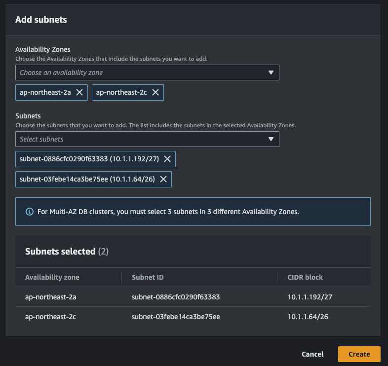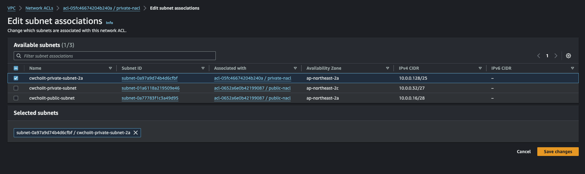 연동하고자 하는 서브넷을 선택하고 'Save changes' 클릭