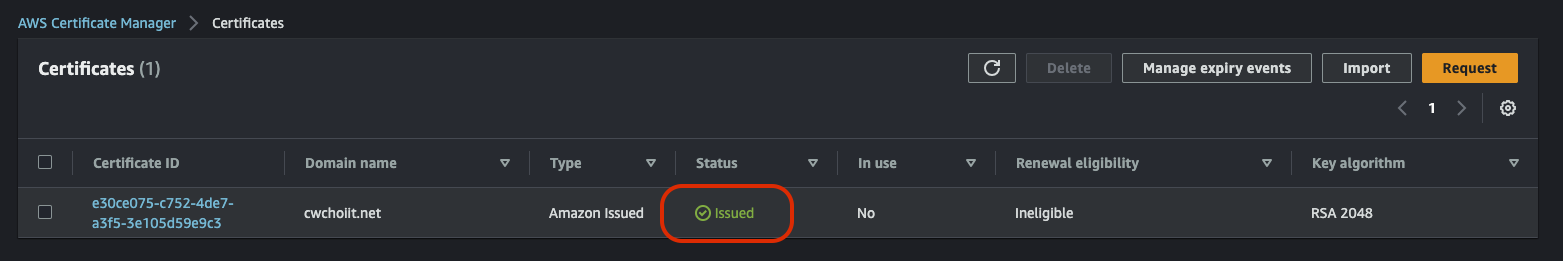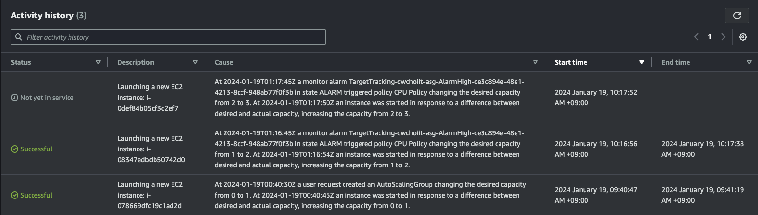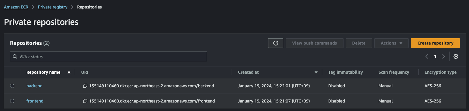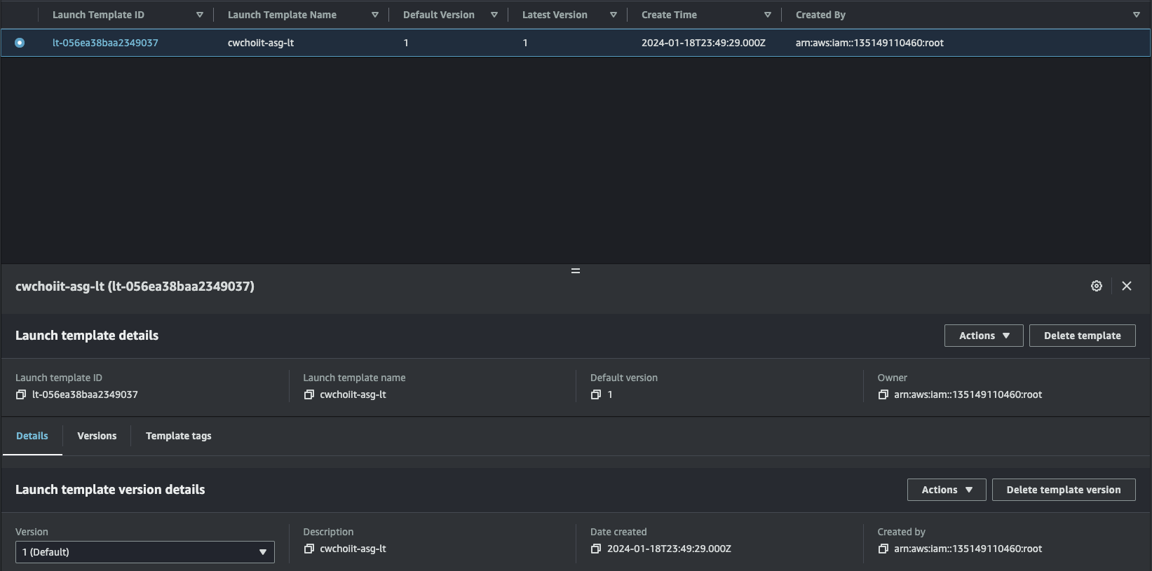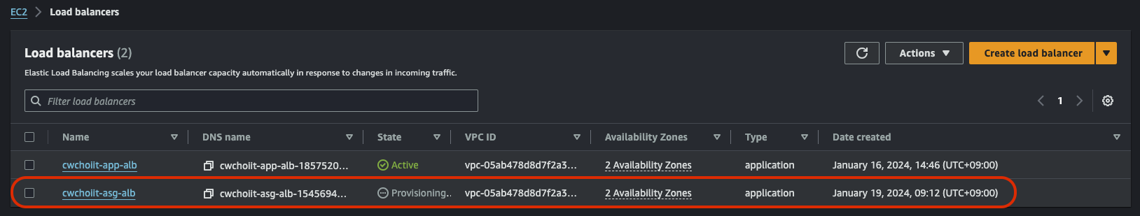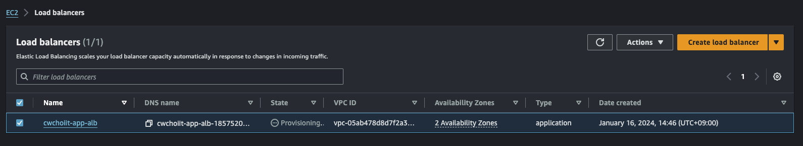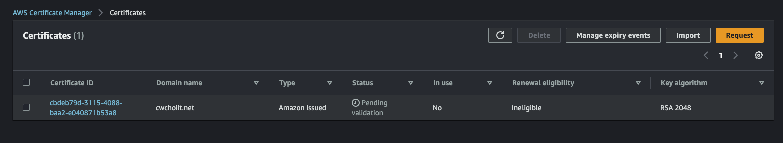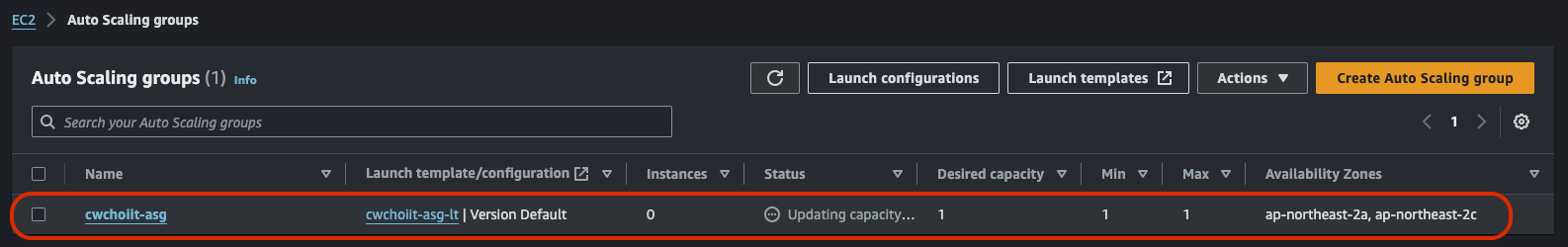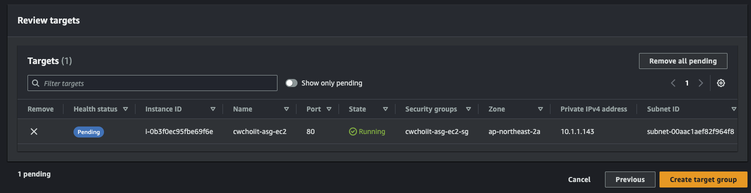 그 외 나머지는 전부 기본 설정으로 하고 생성을 마친다. 생성이 끝나면 리스트에서 확인할 수 있다.