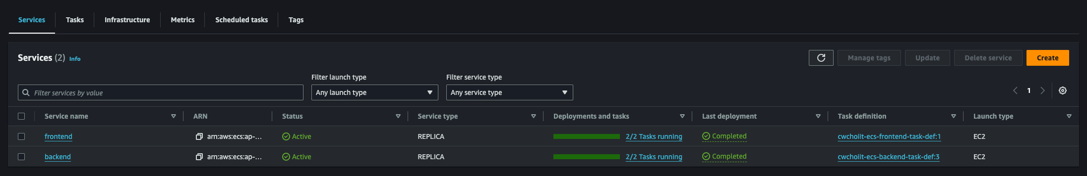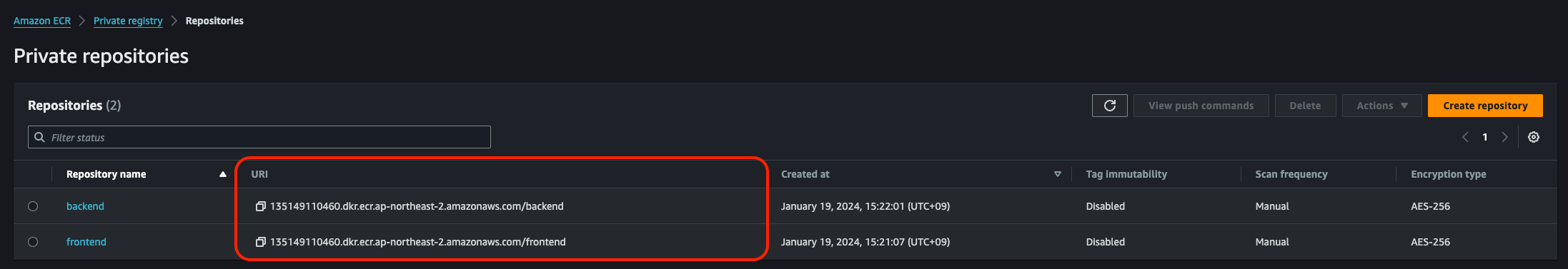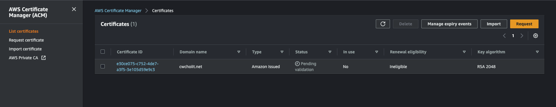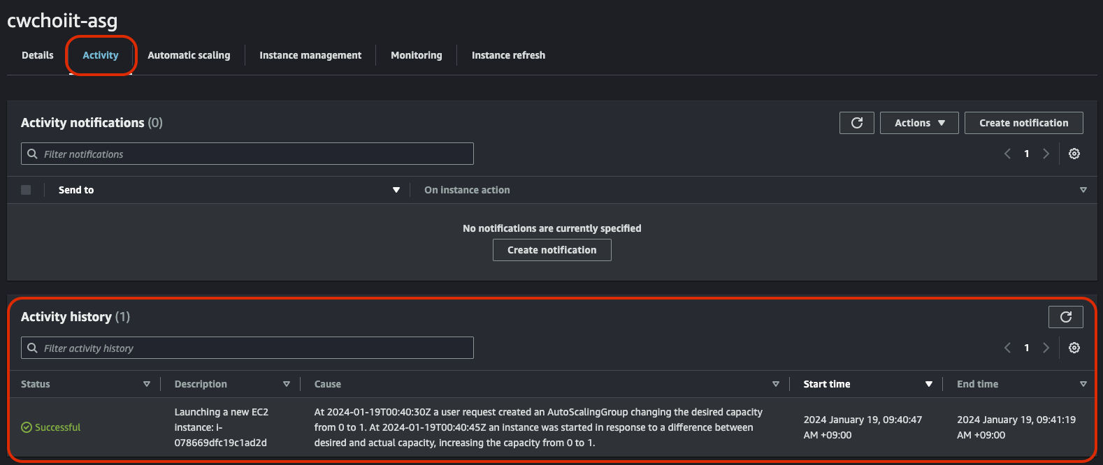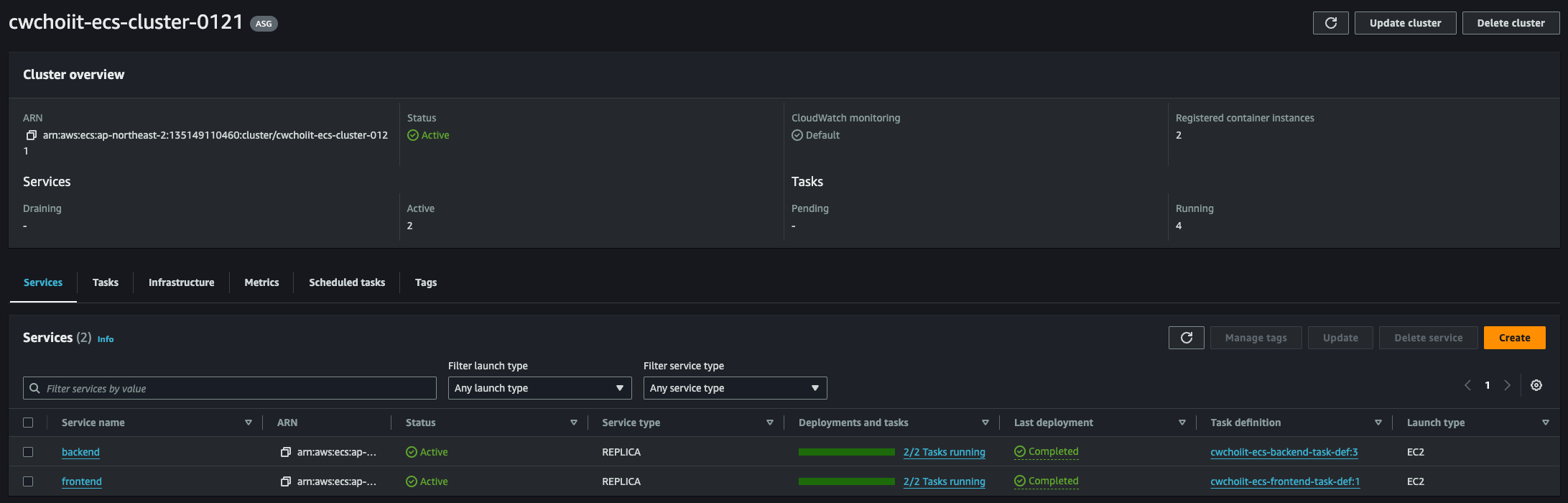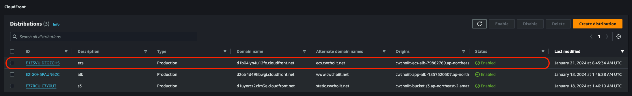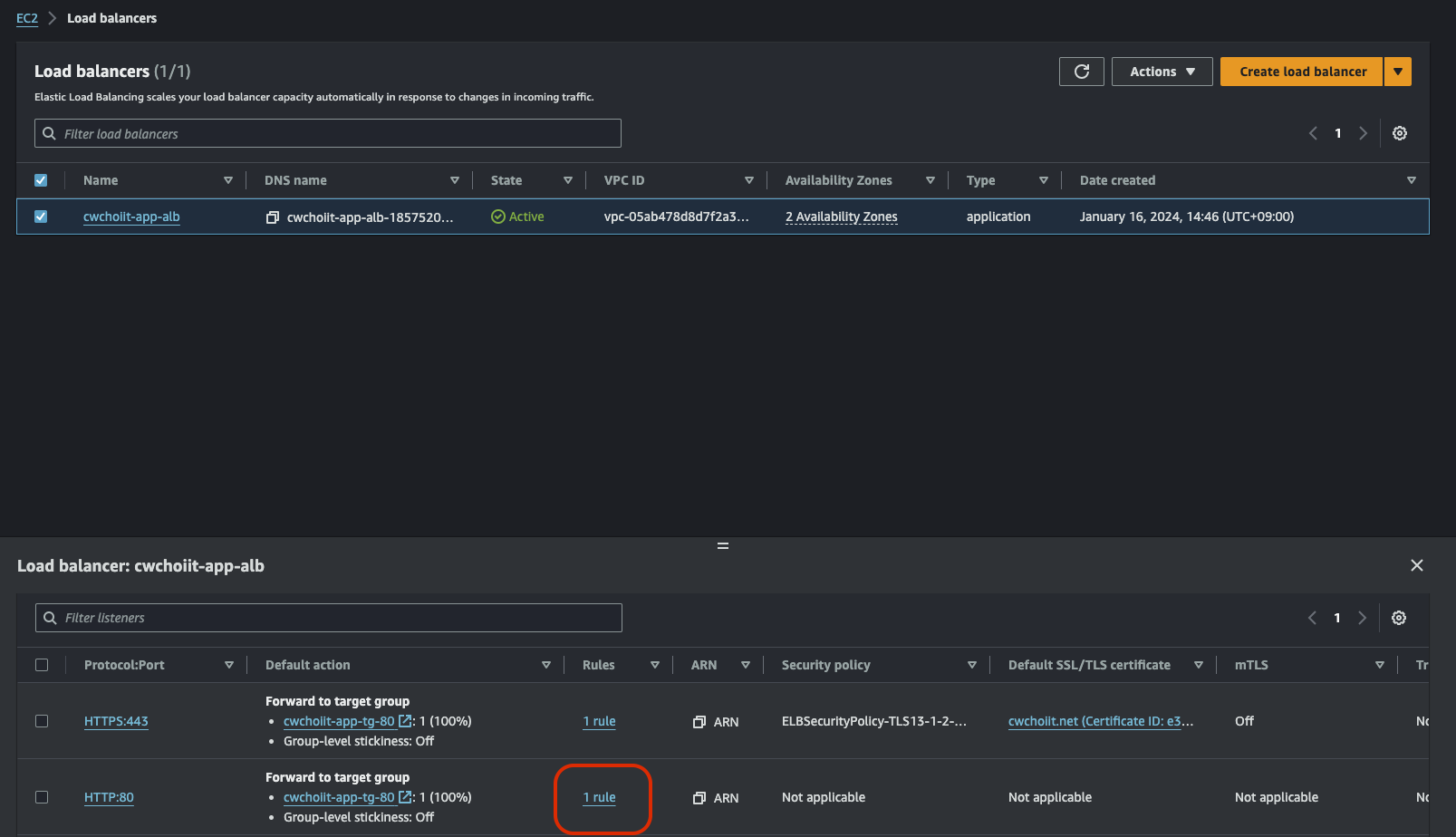 그 외 나머지는 전부 기본 설정으로 하고 생성을 마친다. 생성이 끝나면 리스트에서 확인할 수 있다.
