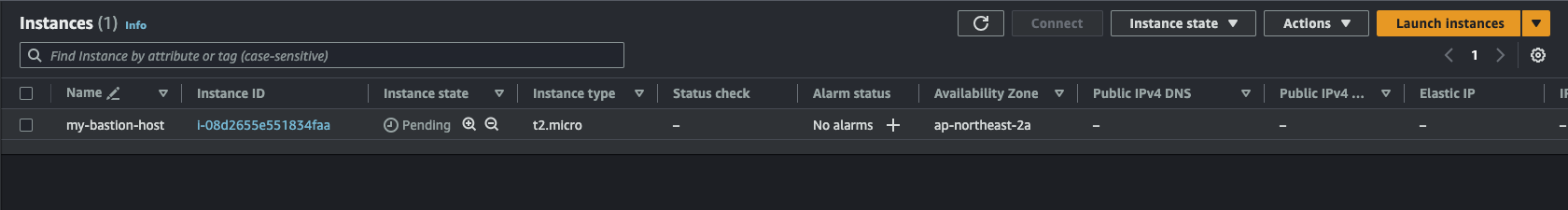 이제 Public subnet A에 EC2 인스턴스를 만들어보자. 이 인스턴스는 Bastion(요새, 보루 즉 거쳐가는 곳을 의미) Host라는 개념으로 보면 된다. 여기를 통해서 AWS DevOps 유저가 직접 접근하여 Private subnet에 있는 EC2 인스턴스에 들어갈 수 있게 될 것.