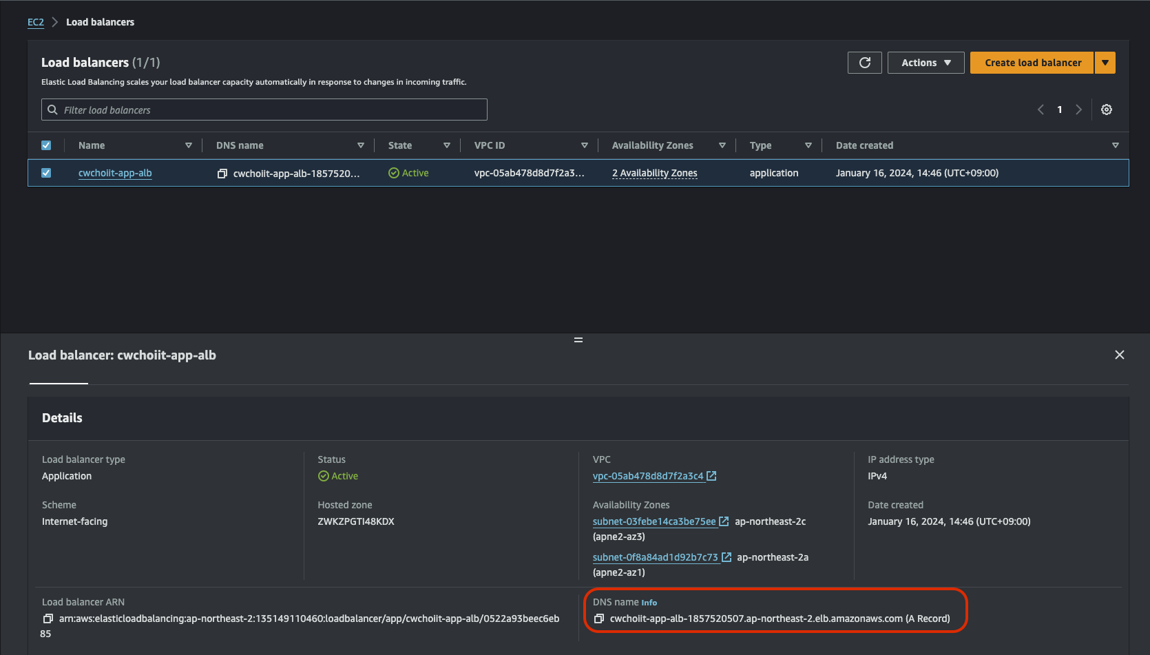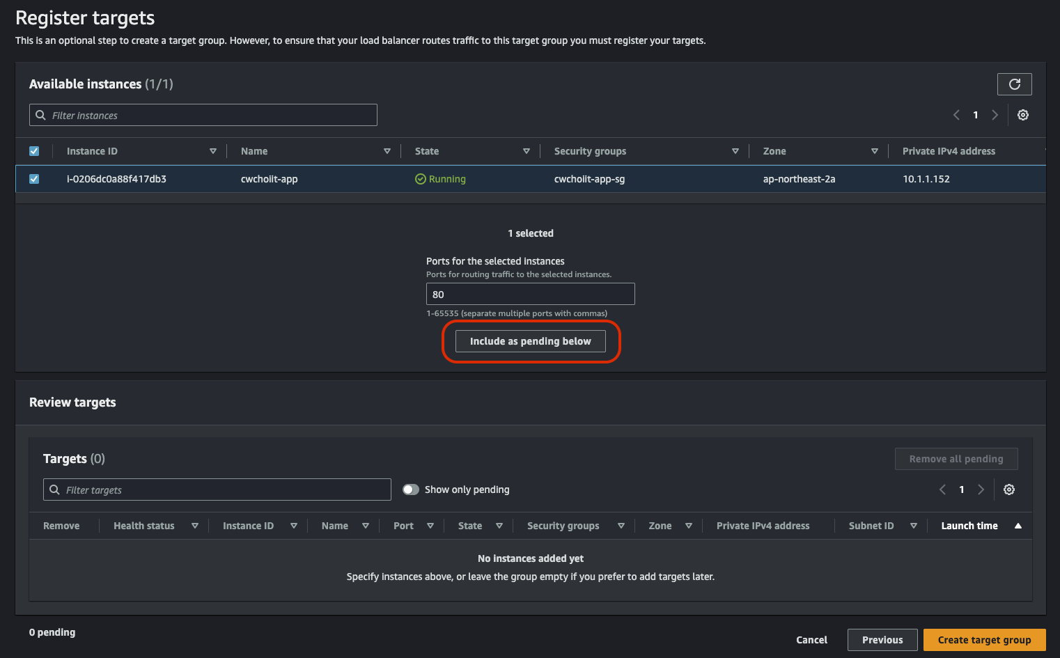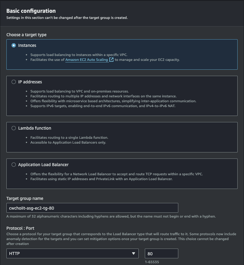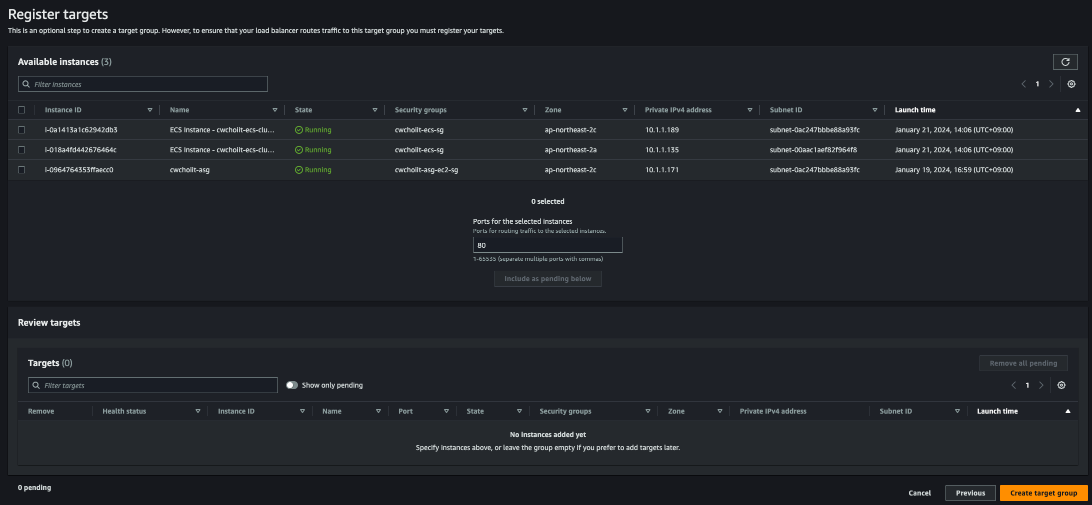 네트워크는 방금 만든 도쿄의 VPC와 private subnet-1을 선택하면 된다.