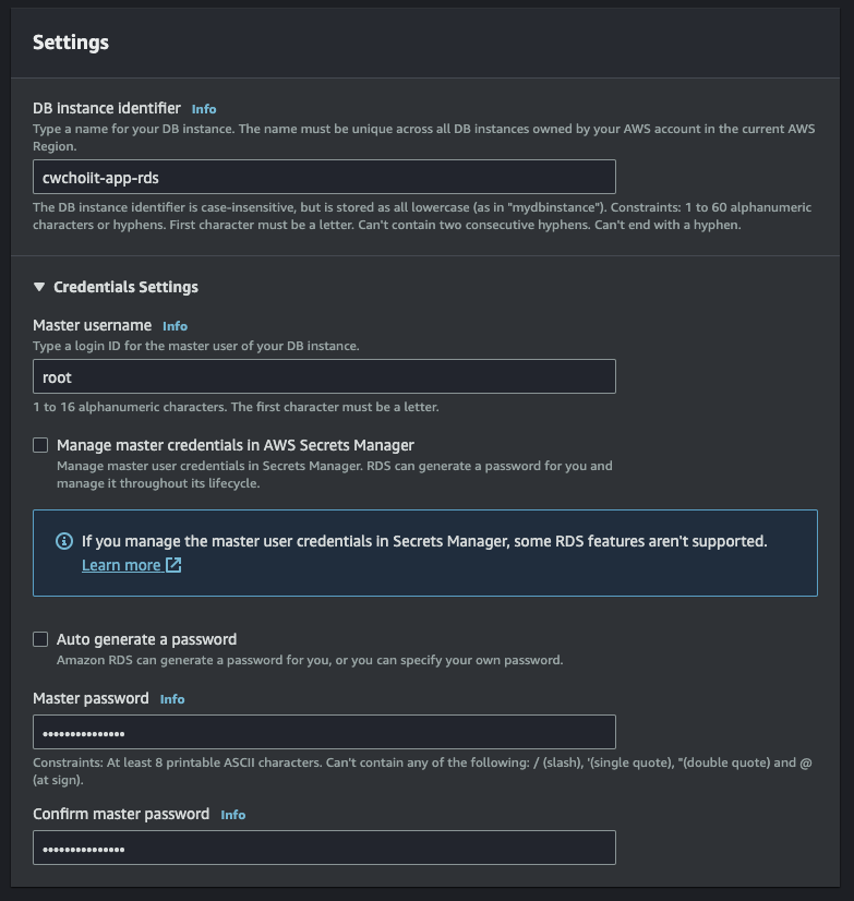 - DB Instance Identifier: 적절하게 입력