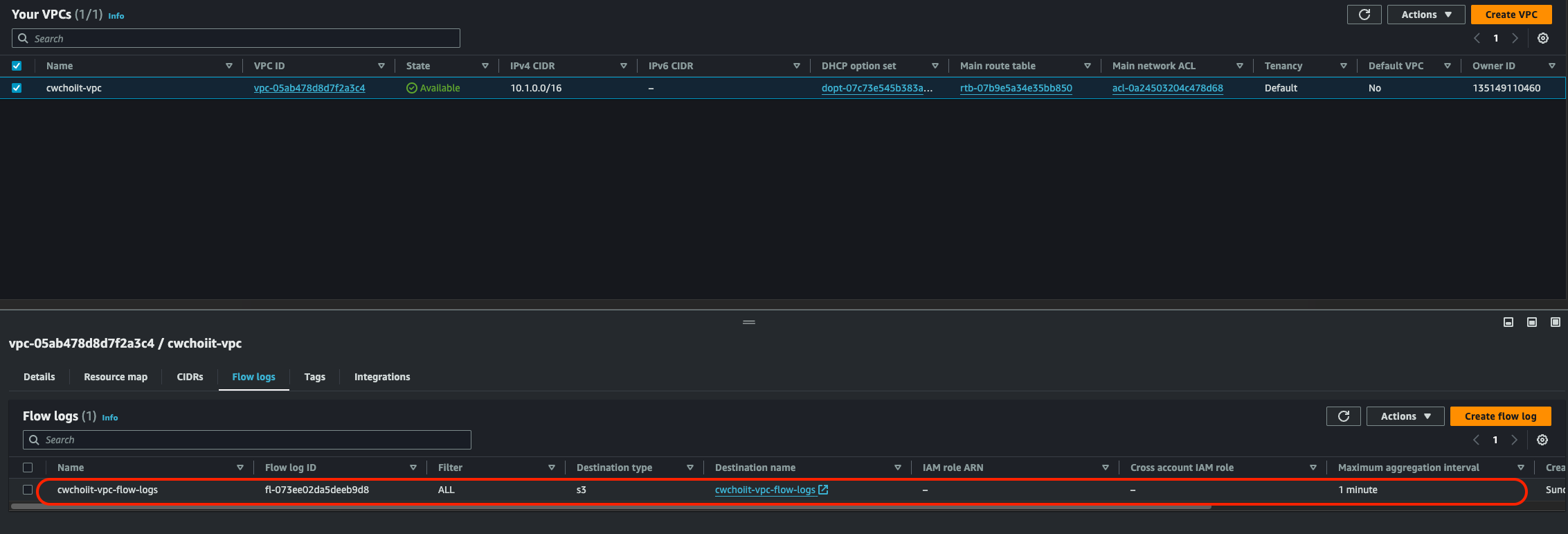 - Name: cwchoiit-vpc-flow-logs