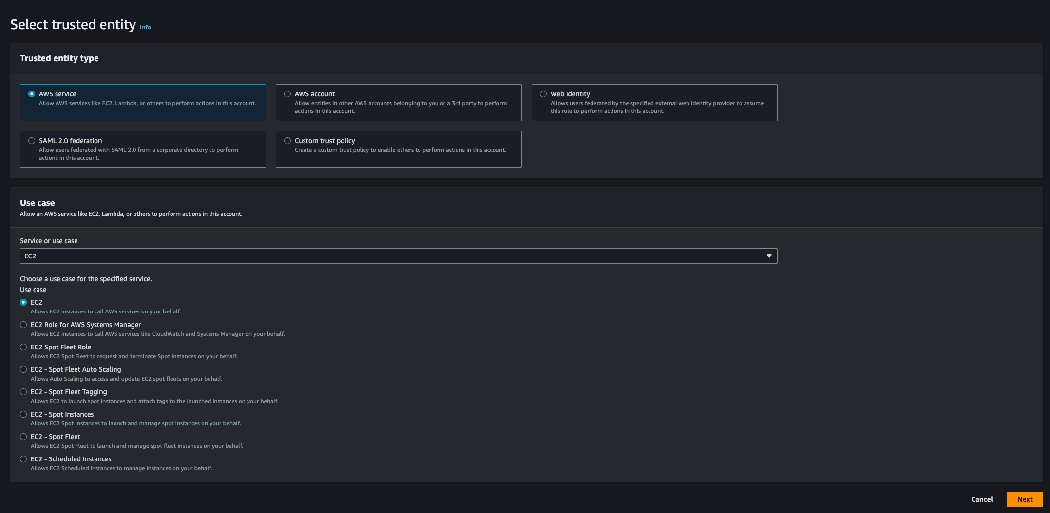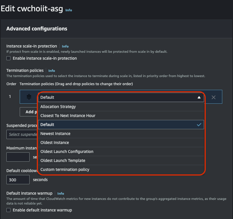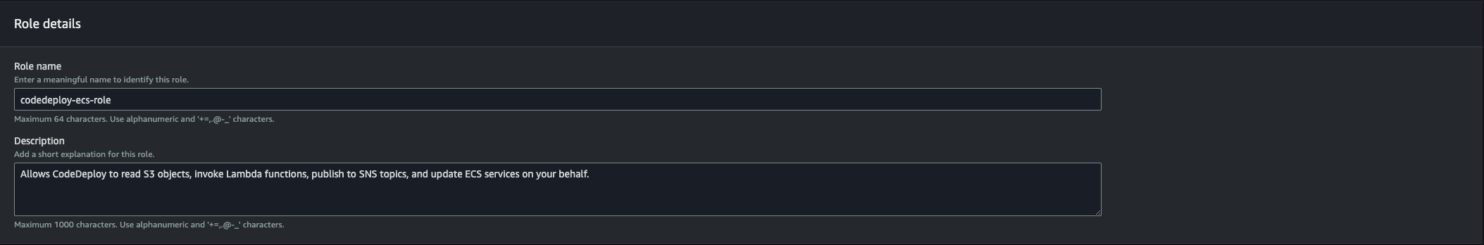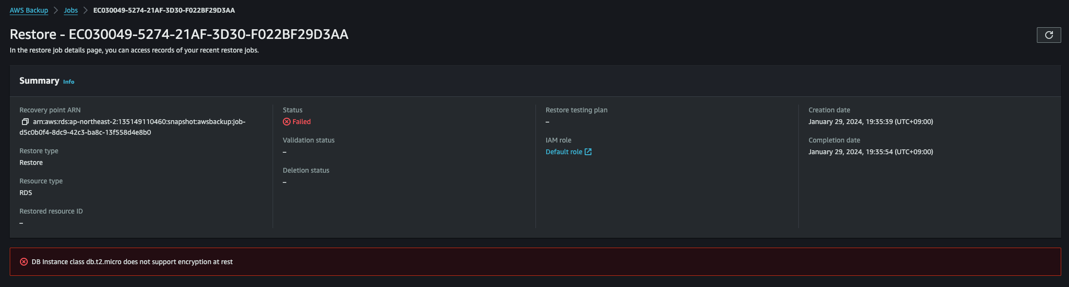 - IAM Role: Default role