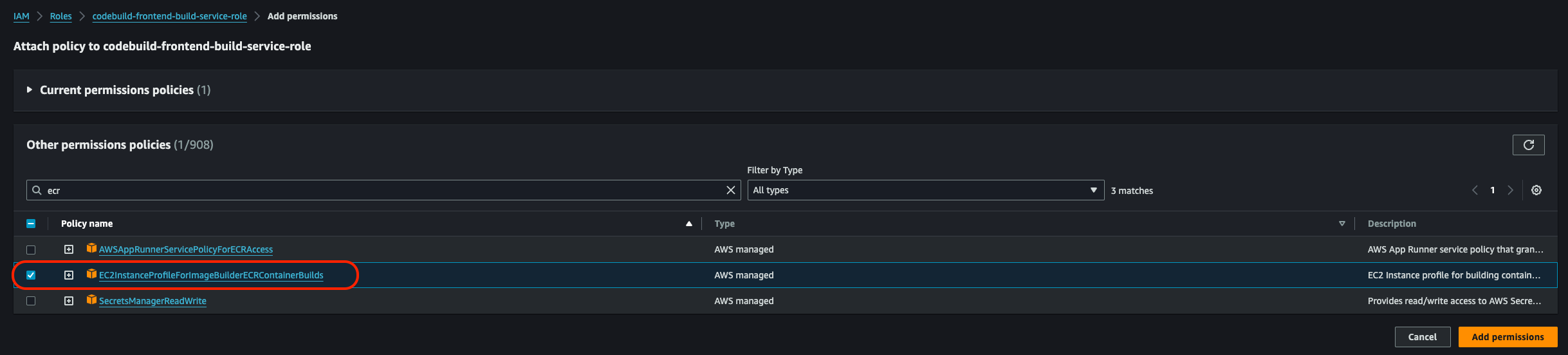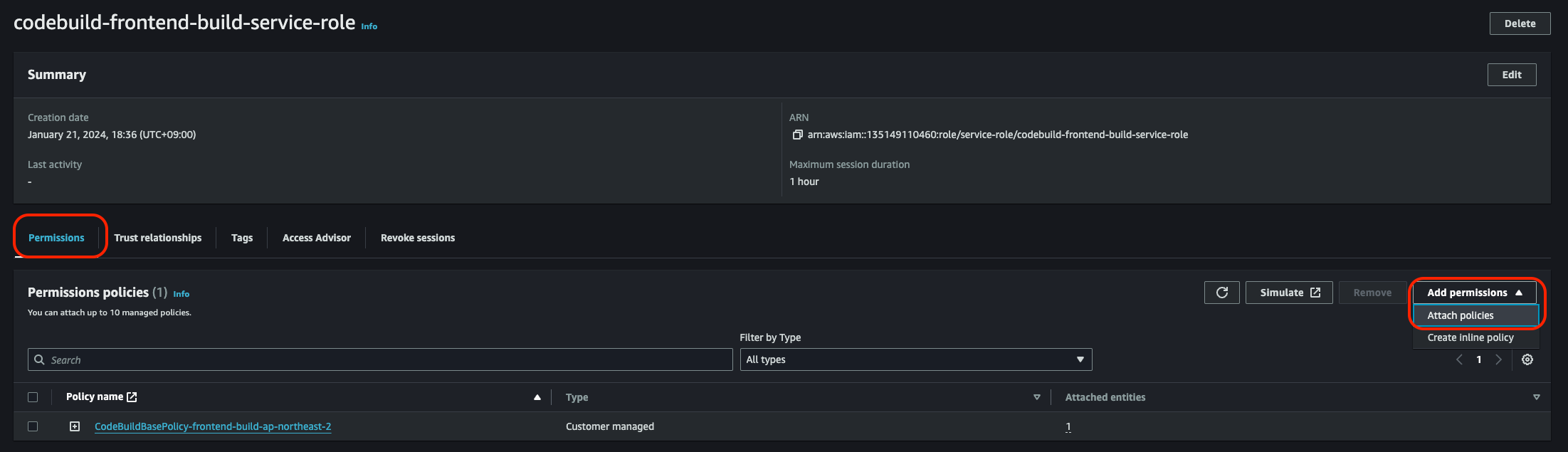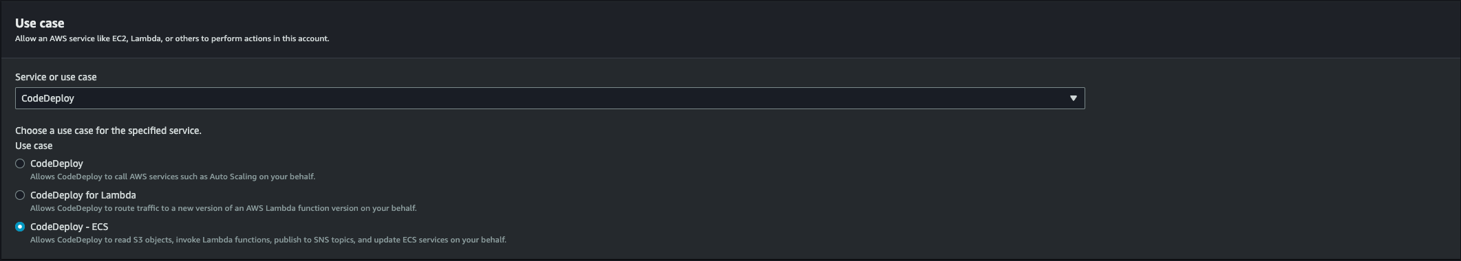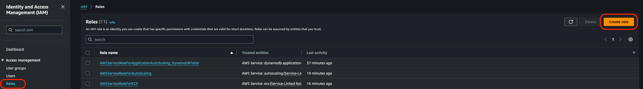 - IAM Role: Default role