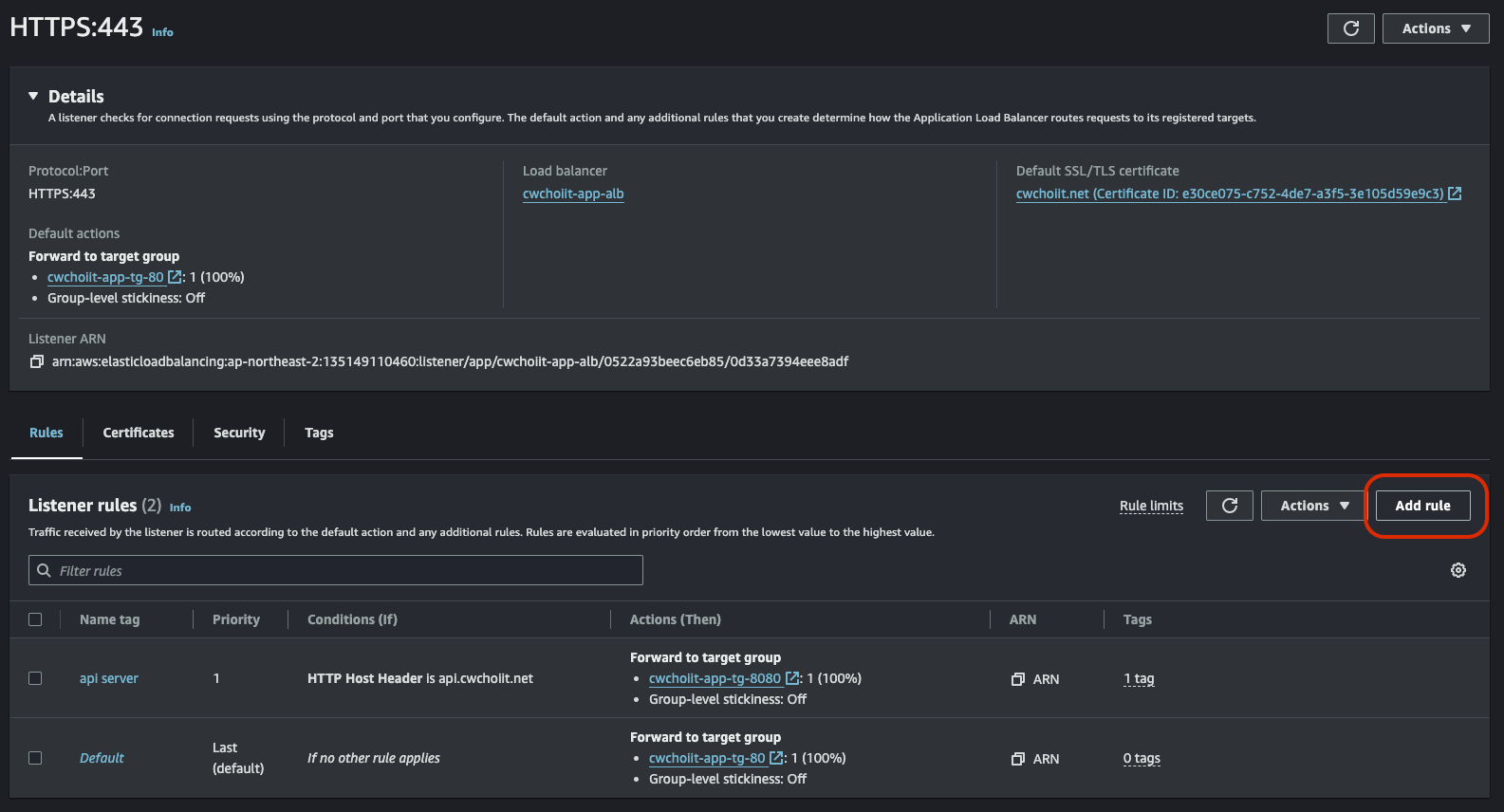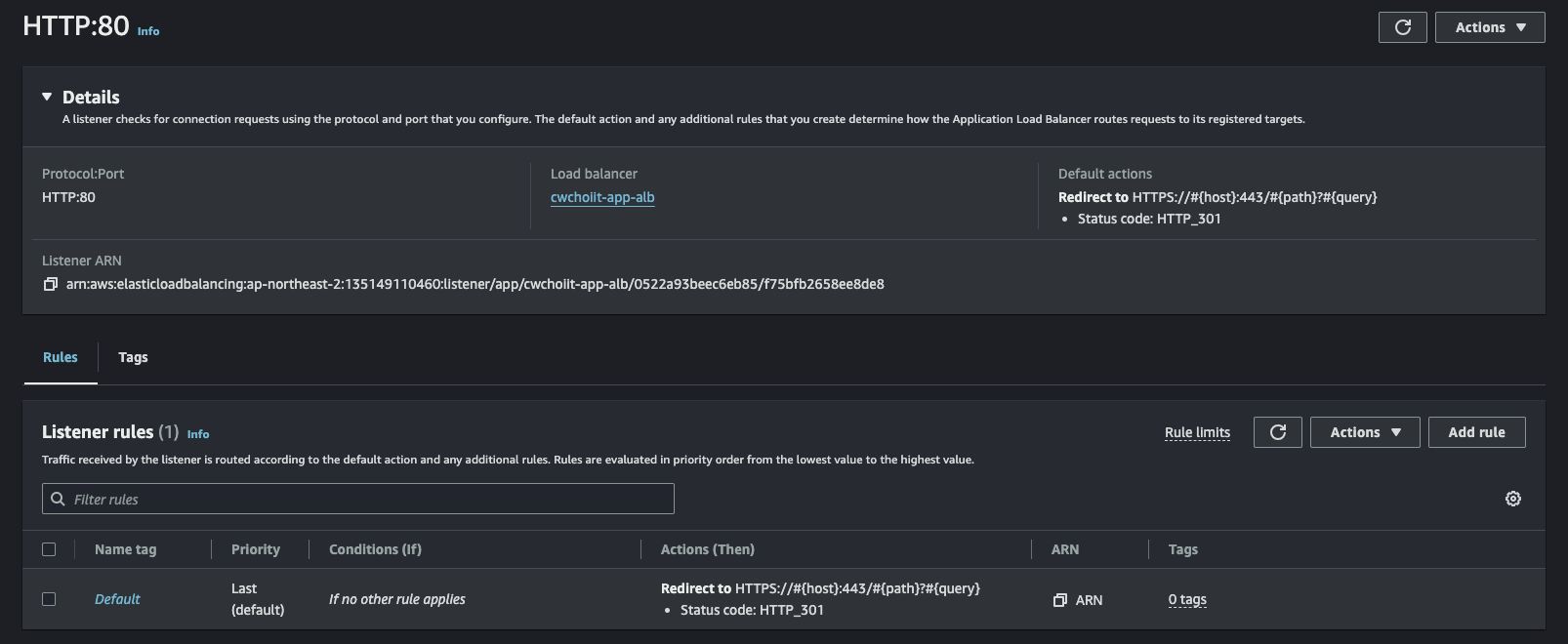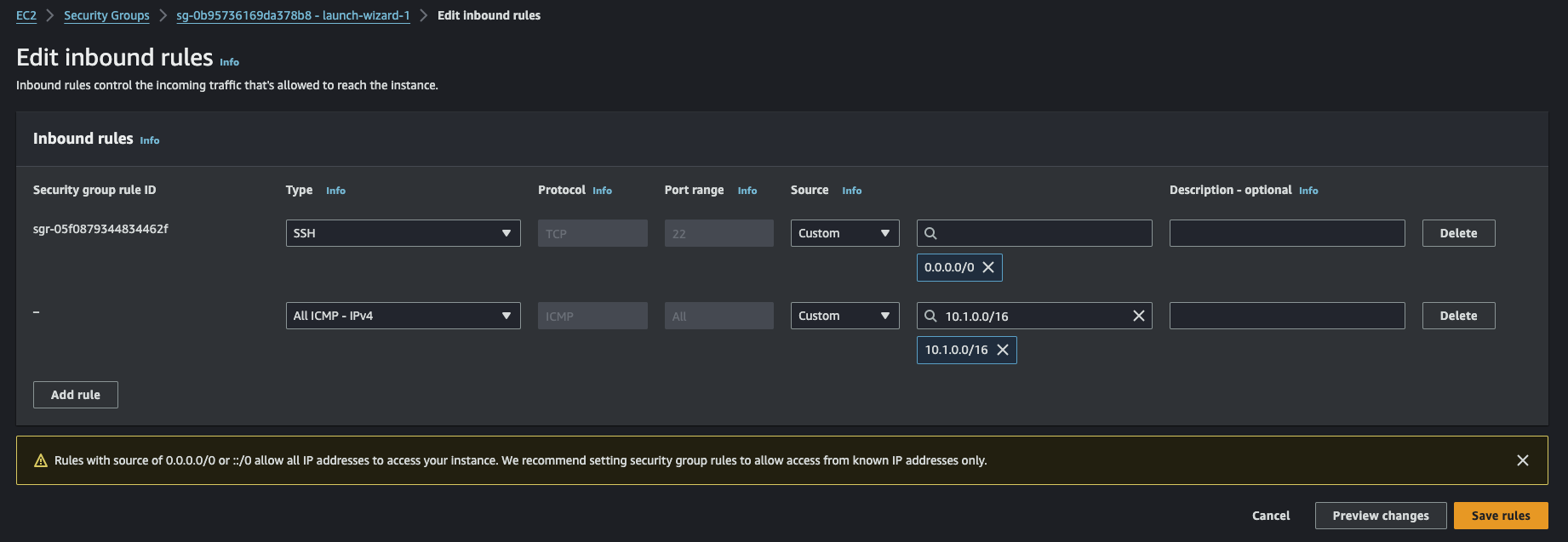 이제 생성된 인스턴스에 적용된 보안 그룹을 수정해야 한다. 서울에서 들어올 수 있게 서울 대역을 허용해주자.