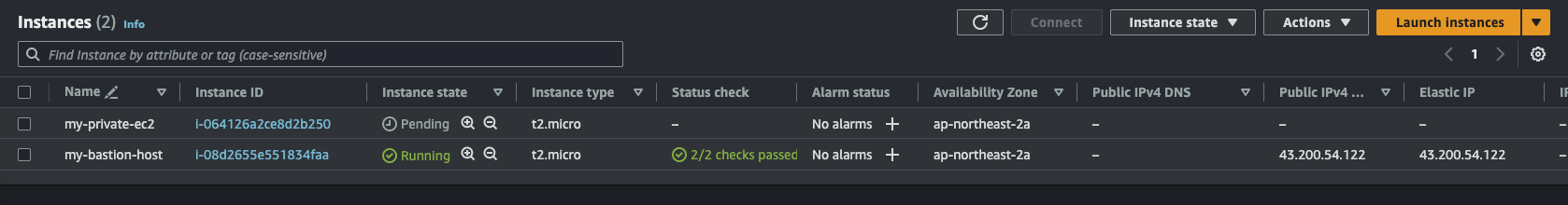 이렇게 생성이 다 됐으면 Bastion Host에서 Private EC2에 SSH로 접속이 가능해야 한다. 보안 그룹을 그렇게 세팅했으니까.