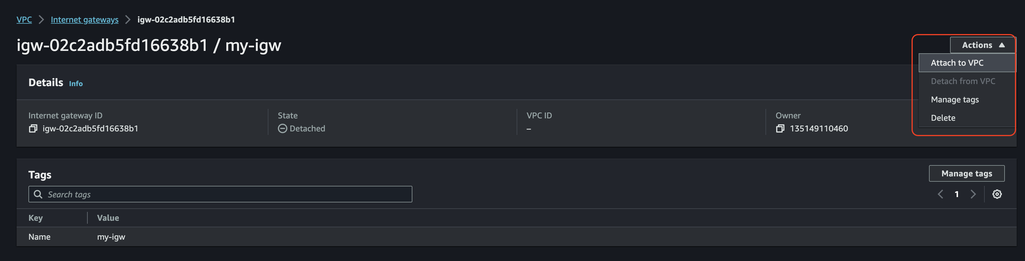잘 떼어내면 상태가 In-Use에서 Available로 변경된다.