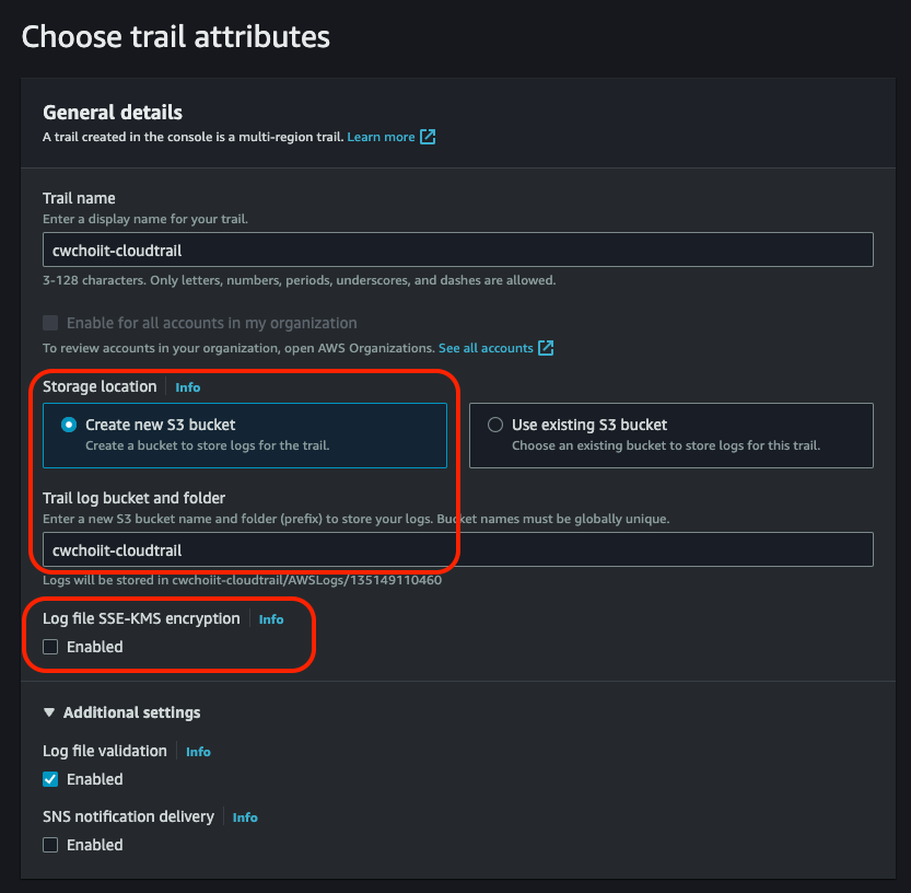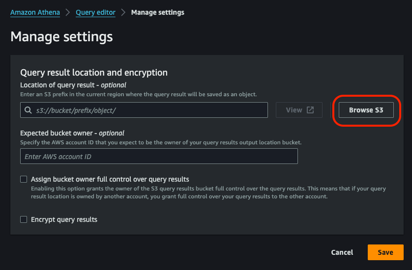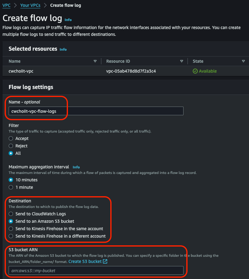- Destination: S3 bucket