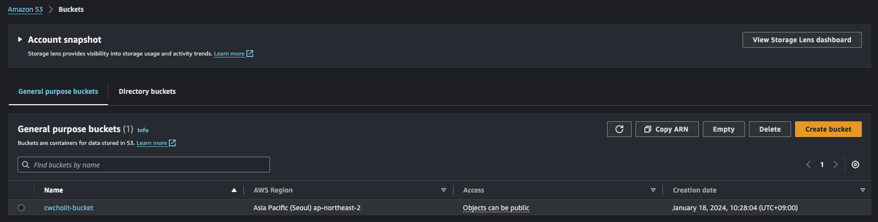 테이블을 만들면 버킷에서 로그가 잘 쌓여있는지 확인해보자. 아까 트래픽을 발생시켰으니까 시간이 좀 지나면서 로그가 쌓일것이다.