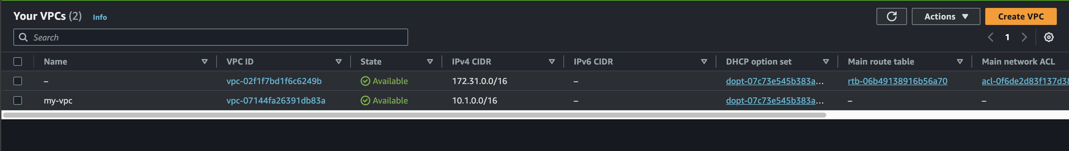 AWS Console에서 VPC를 검색해서 서비스에 들어가고 화면 좌측 VPC를 클릭한다.