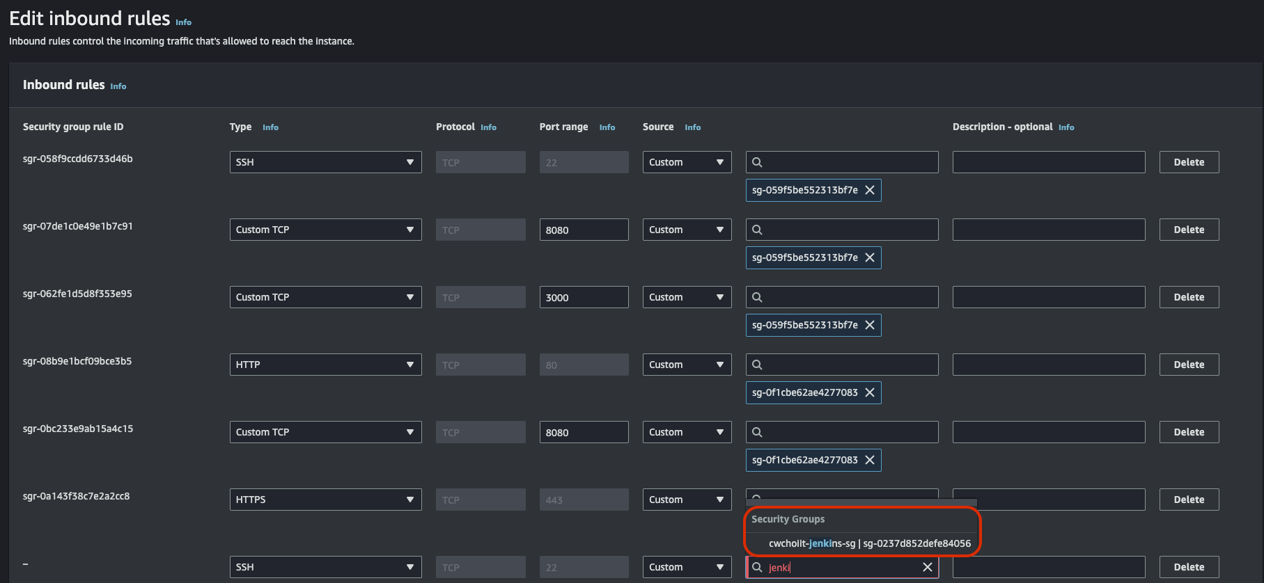 보안 그룹 인바운드 규칙 수정