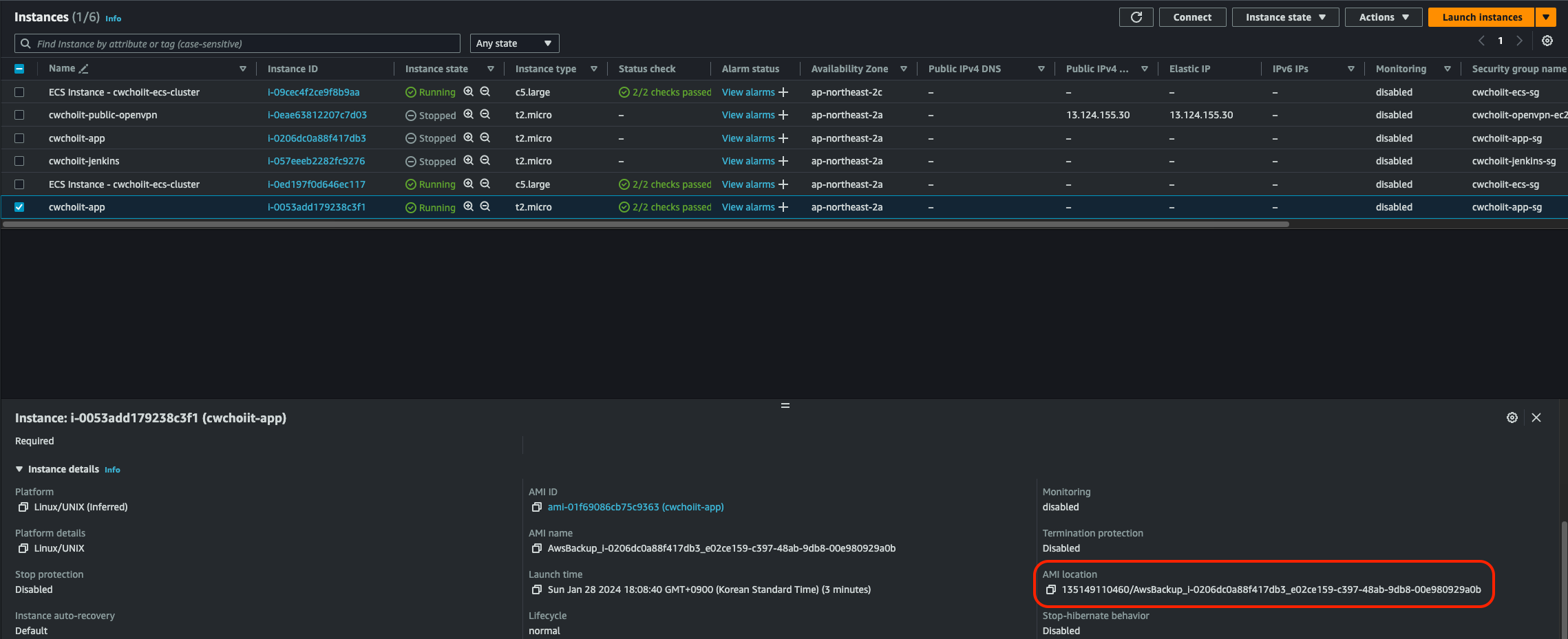 생성이 완료되면 인스턴스 리스트에 잘 보이면 된다.