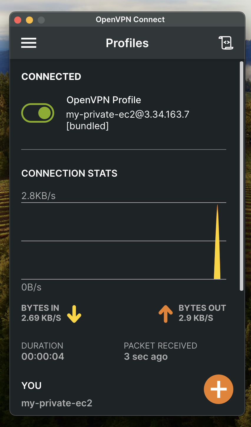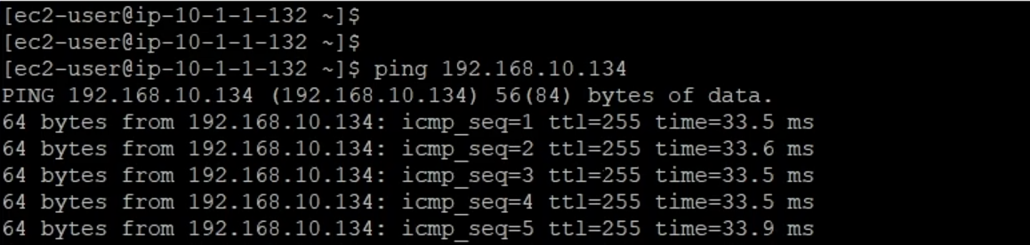 이제 모든 준비가 끝났다. 위에서 OpenVPN을 커넥트하면 로컬에서 바로 프라이빗 EC2 인스턴스에 SSH로 접속이 가능하다. 접속한 후 도쿄의 EC2 인스턴스 Private IPv4 Address로 핑 명령어를 입력하자.