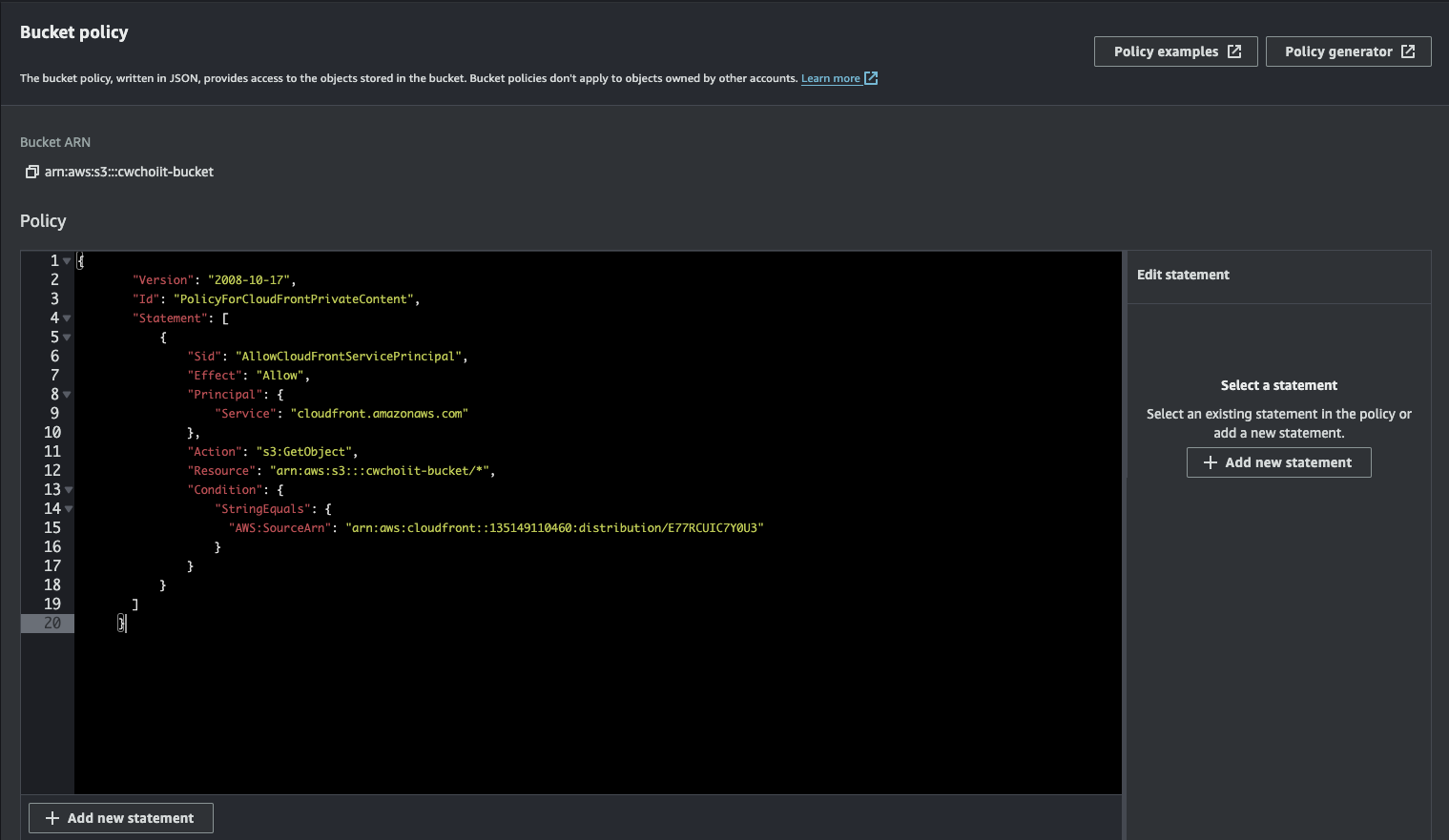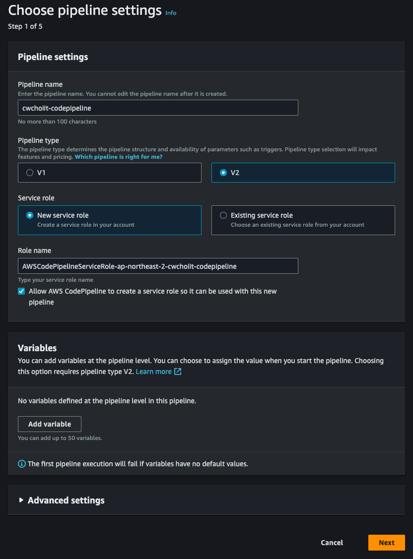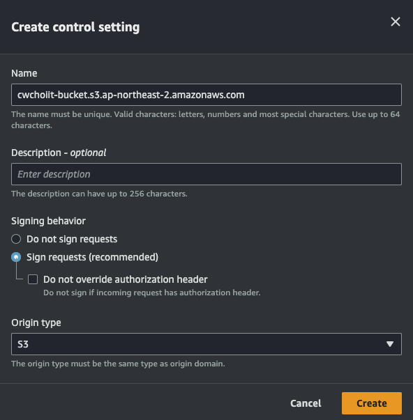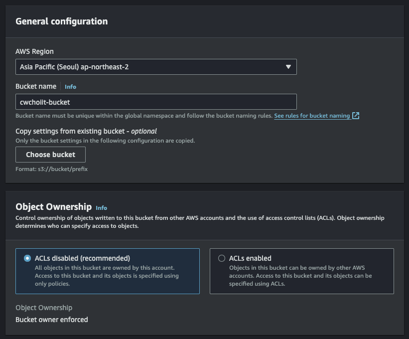 - S3 bucket ARN: S3 버킷의 ARN을 입력 (S3 Bucket은 직접 만들어서 ARN 입력란에 입력해야 한다)