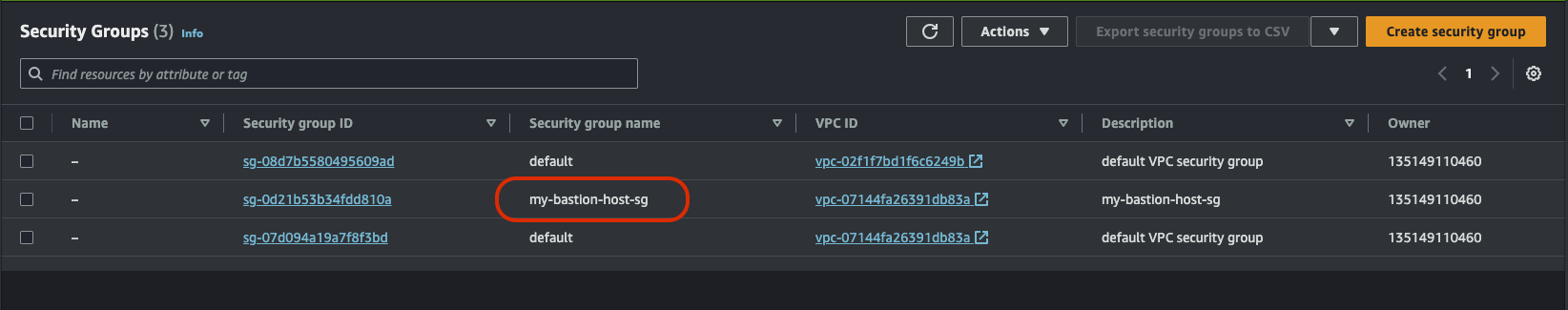그리고 생성하기를 누르면 리스트에 방금 만든 보안그룹이 보인다.