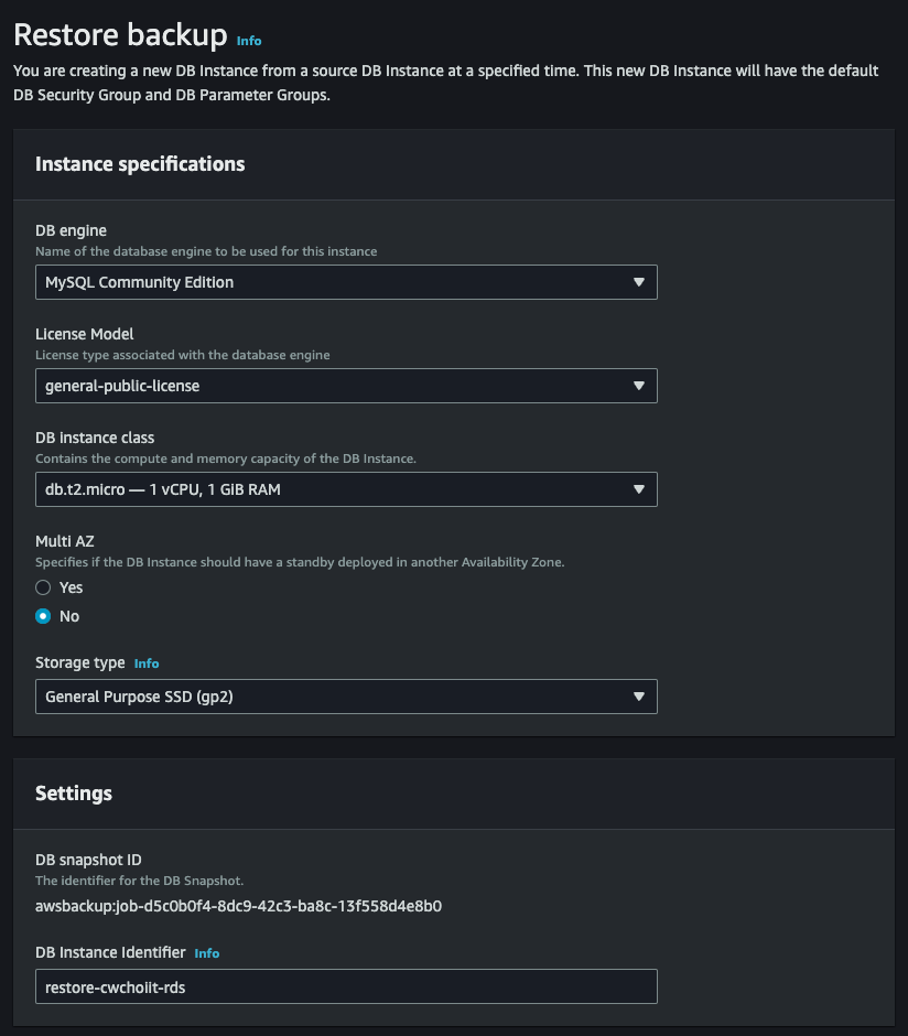 - Database name: 백업할 RDS