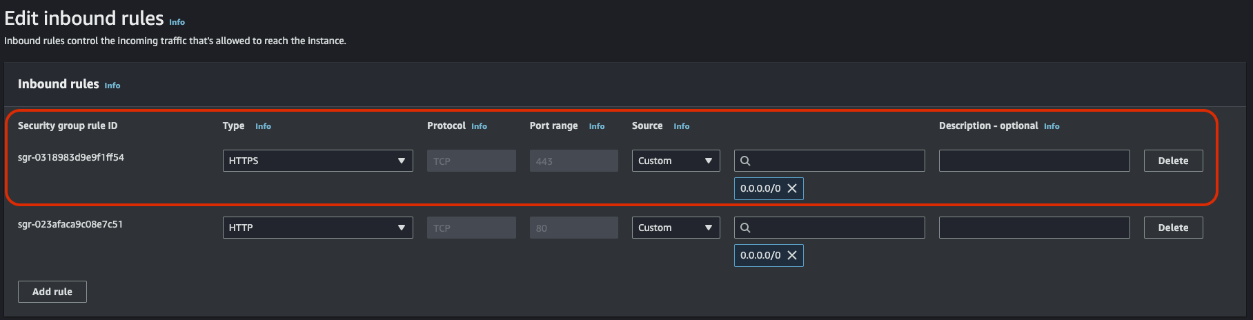 이제 Inbound, Outbound 설정을 해야한다. 인바운드는 들어오는 트래픽이고 아웃바운드는 여기서 나가는 트래픽을 말한다.