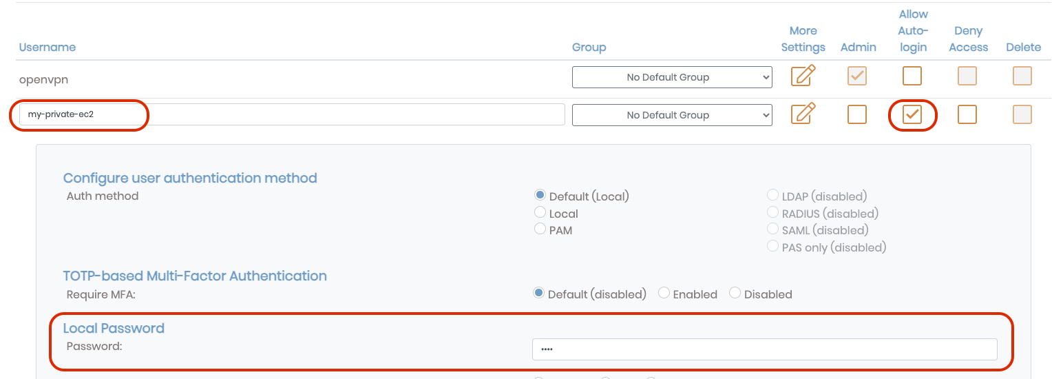 로그인하기 위해 유저 정보를 가져와야 하는데 기본값은 최초 OpenVPN 설정하는 부분에서 알려준다.