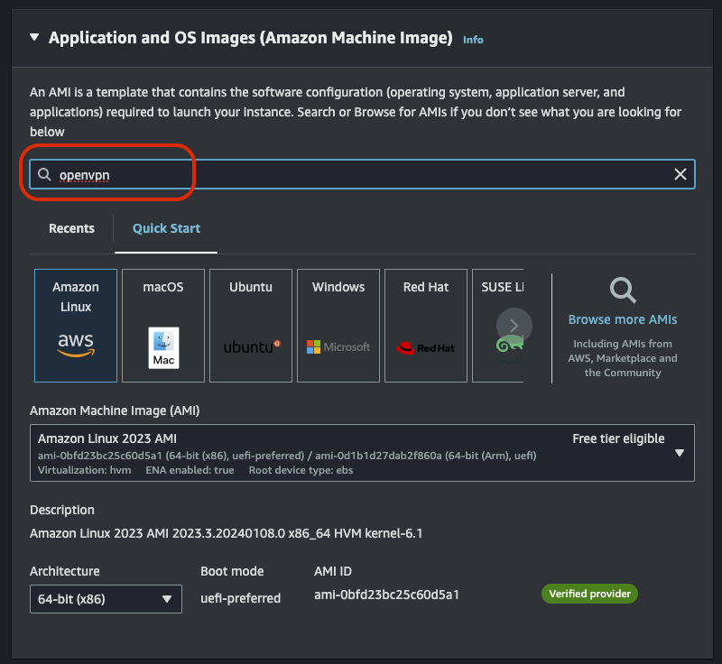 OS Image는 'openvpn'으로 검색