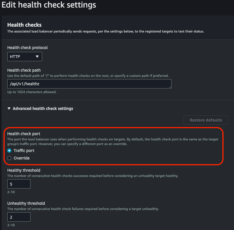 복원 설정 화면에서 수정할 부분은 다음과 같다.