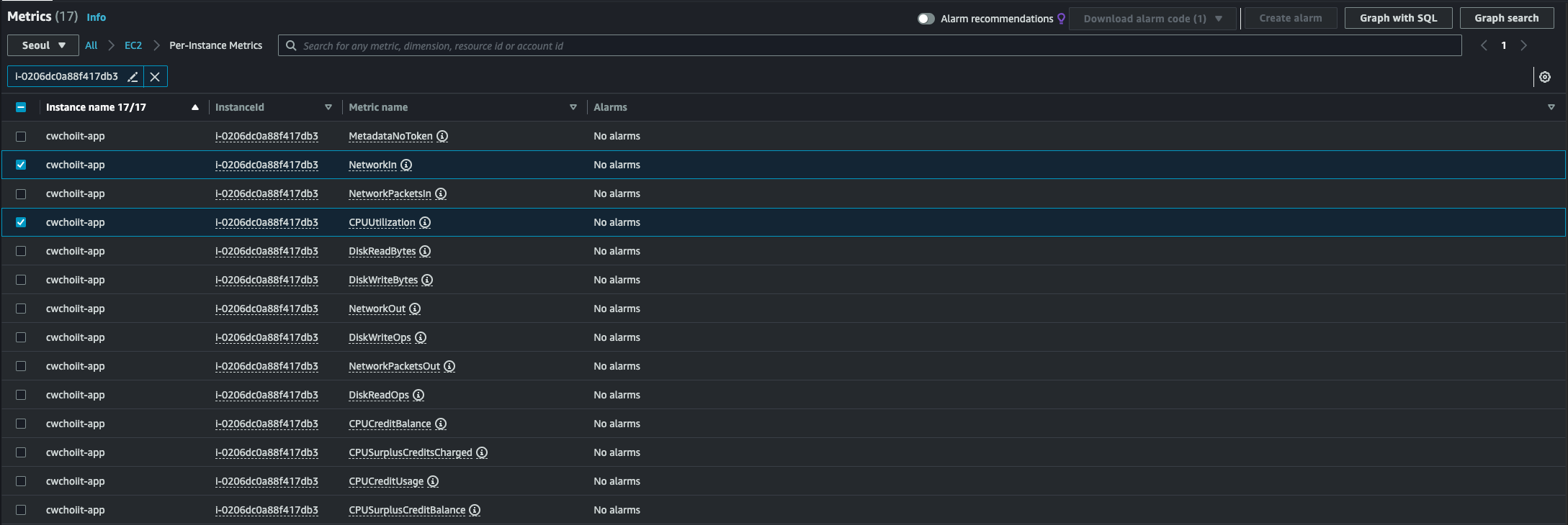 나머지 값은 그대로 둔 채 생성을 한다. 인스턴스 리스트에 생성한 인스턴스가 잘 보인다.