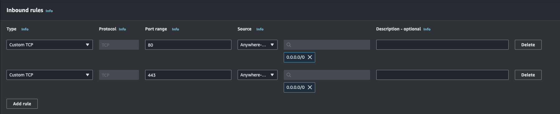 EC2 > Network & Security > Security Groups > Create security group