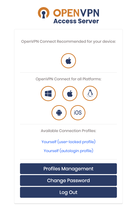 위 화면에서 OpenVPN Connect for all Platforms 섹션에서 본인의 OS에 맞게 설치를 하자.
