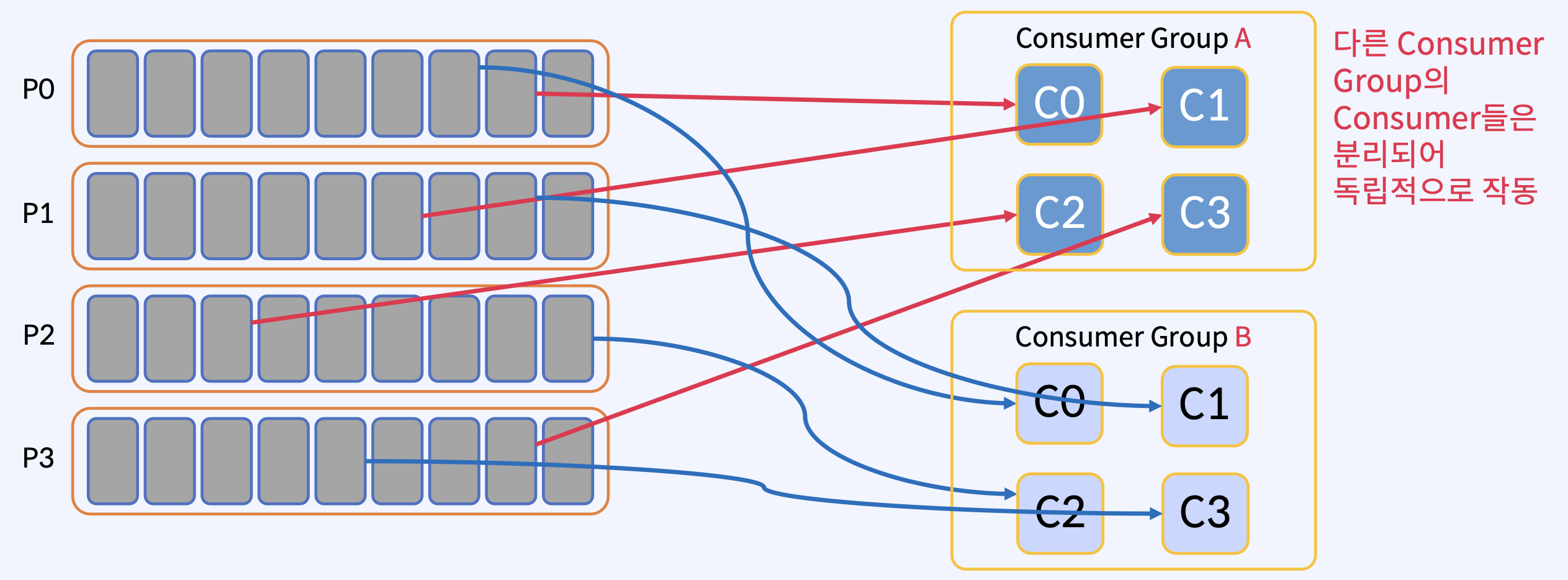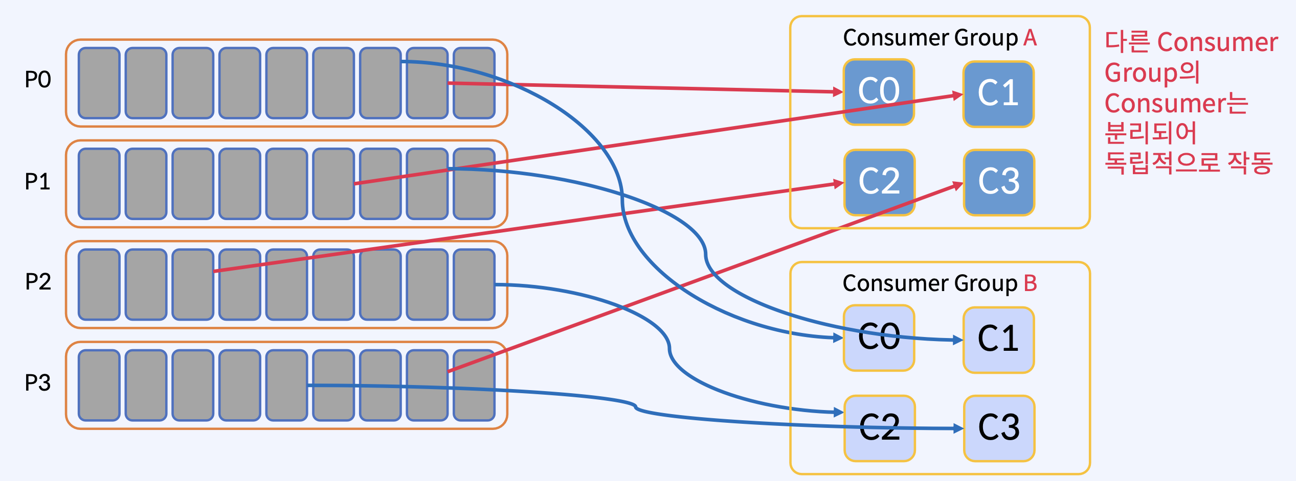 - Consumer가 중복해서 데이터 처리하는 것에 대해 보장하지 않으므로, Consumer의 중복 처리는 따로 로직을 작성해야 한다.