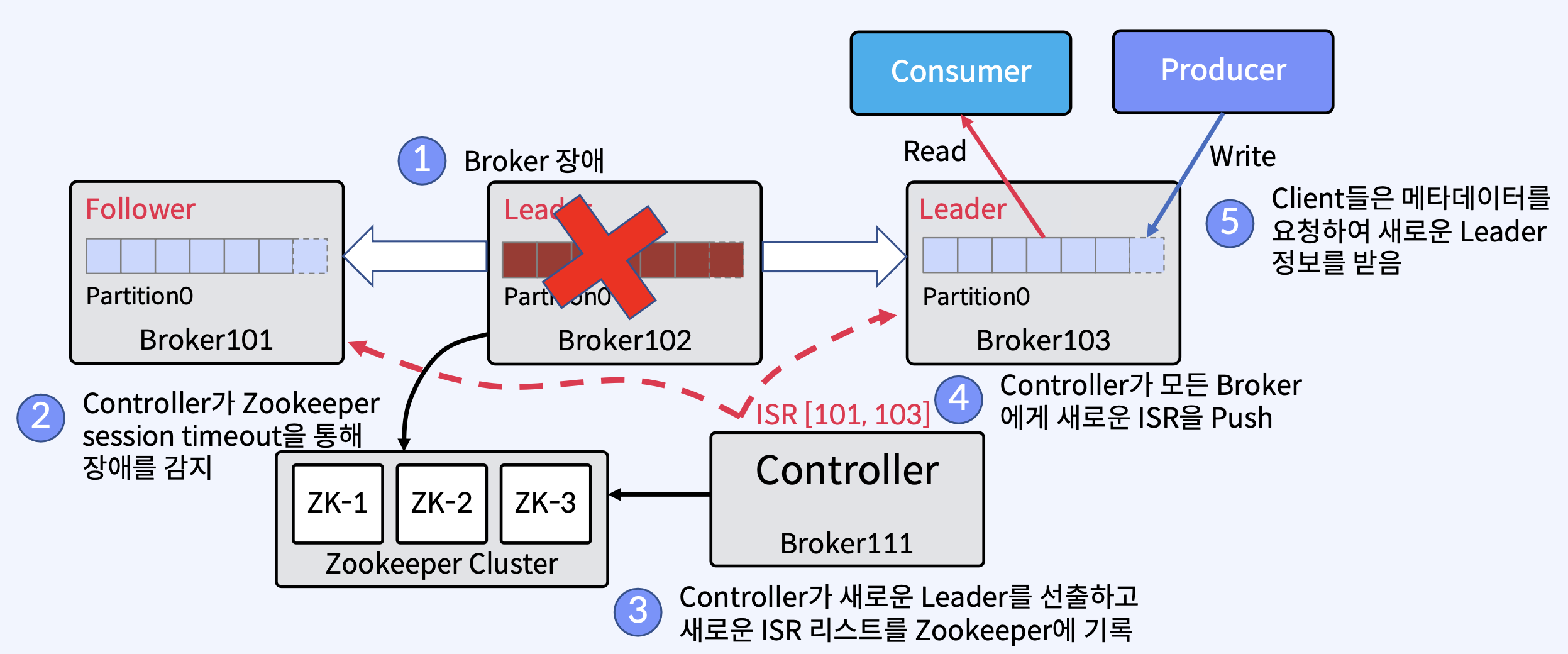 - 이 요청을 받은 각 Broker는 COMMIT(PID) 또는 ABORT(PID) 제어 메시지를 로그에 기록한다.