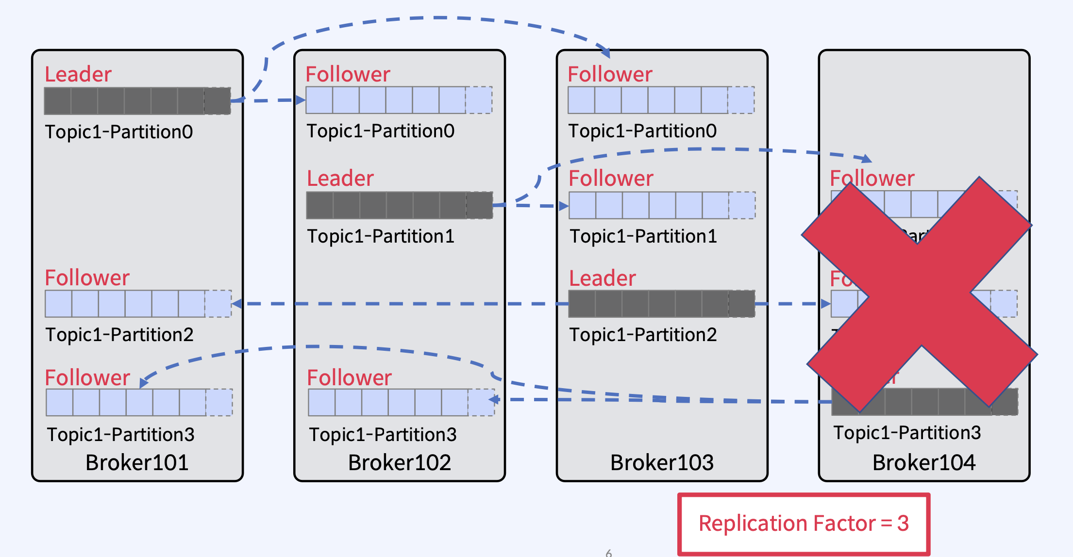 5. 하지만, 중복 메시지를 방지하는 옵션을 설정했으므로, Broker는 DUP 응답을 리턴한다. 즉, Broker가 체크하여 메시지가 중복된 것을 확인하고 메시지를 저장하지 않고 Producer에게 DUP Response를 리턴한다.