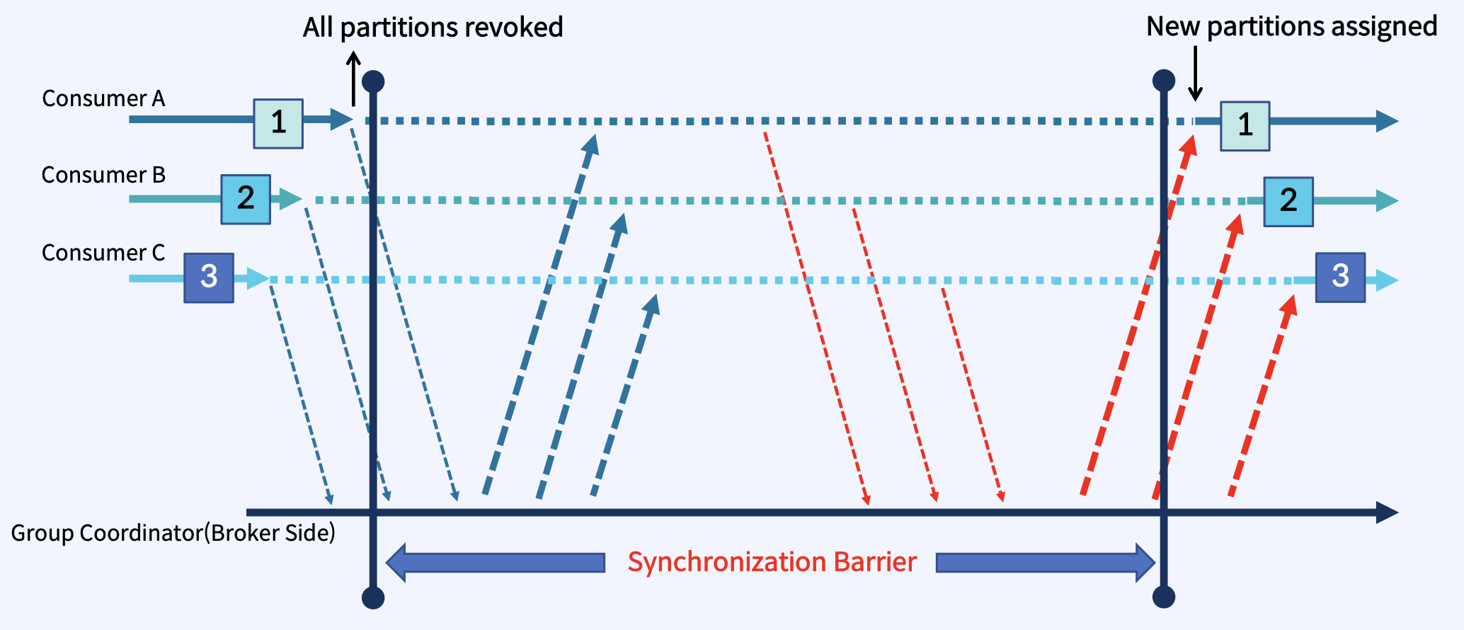 - Consumer Coordinator는 Commit의 경우 이러한 오프셋을 구체화하거나 Abort의 경우 무시해야 한다는 알림을 받는다.
