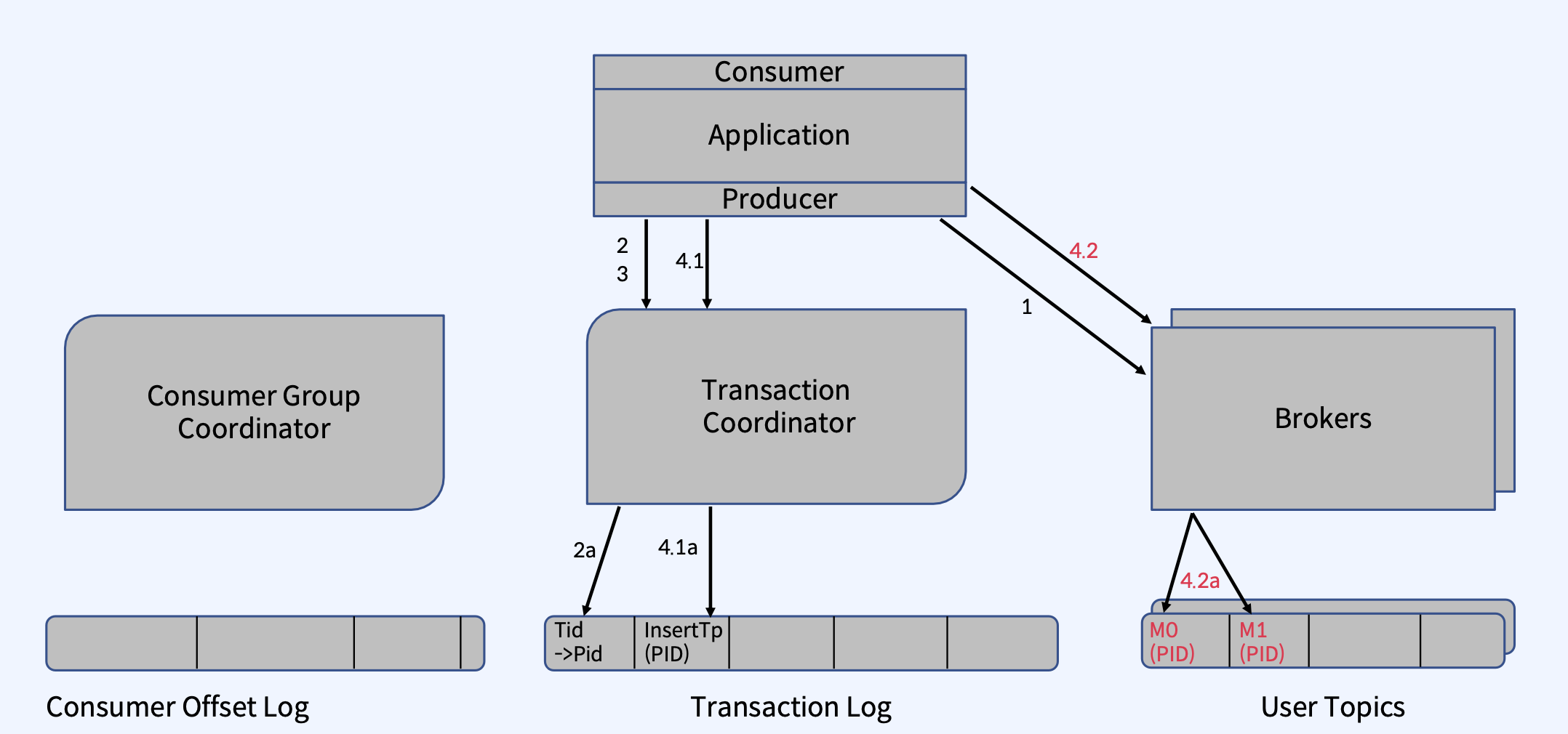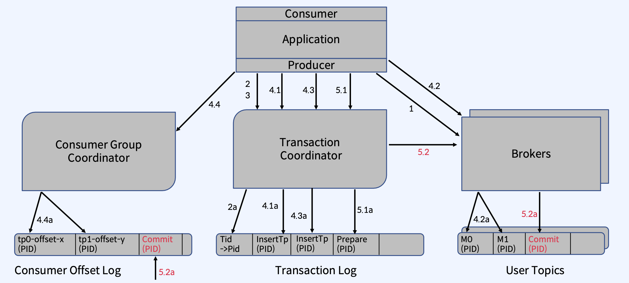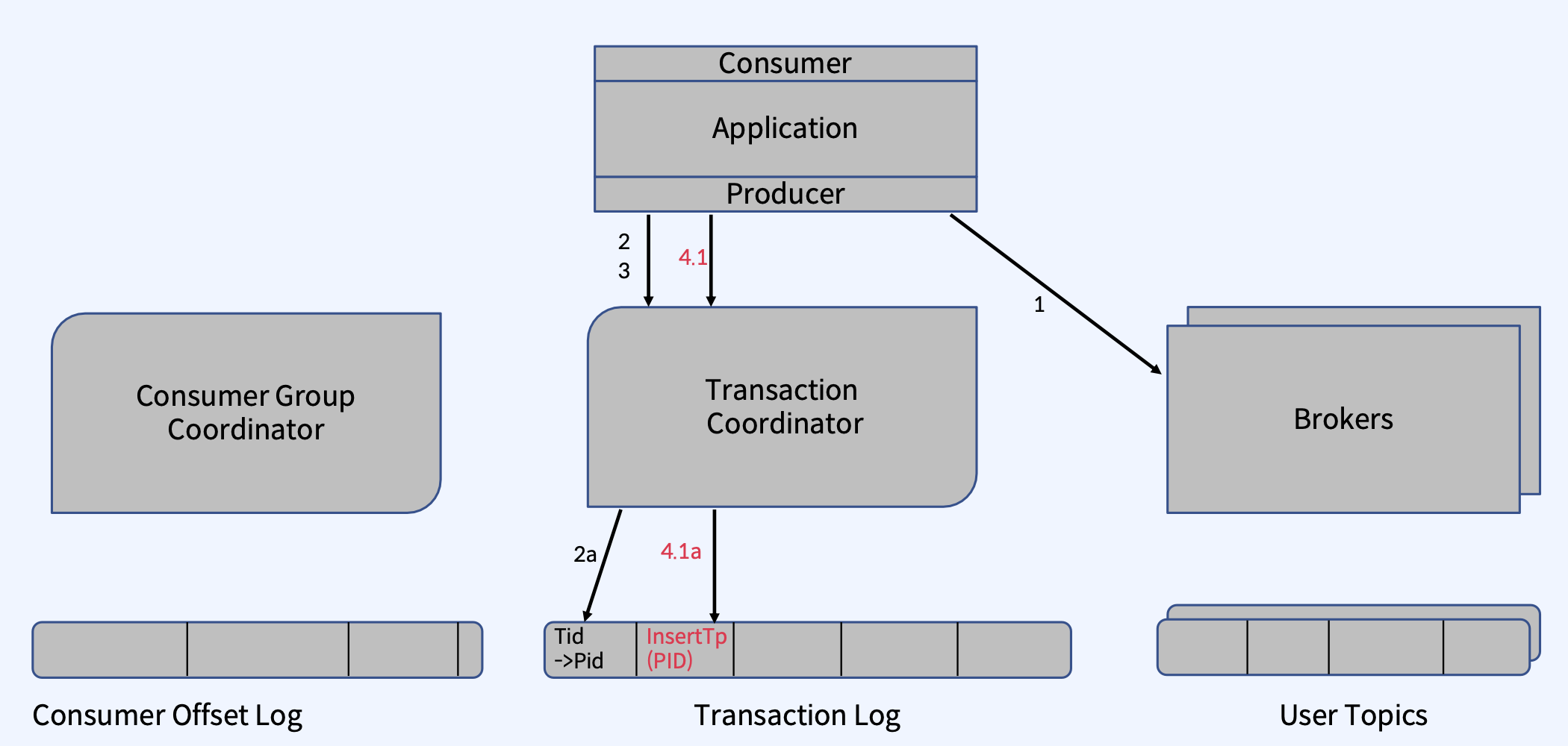 - 이 TopicPartition을 Transaction에 추가하면 Transaction Coordinator가 4.1a 단계에서 기록한다.