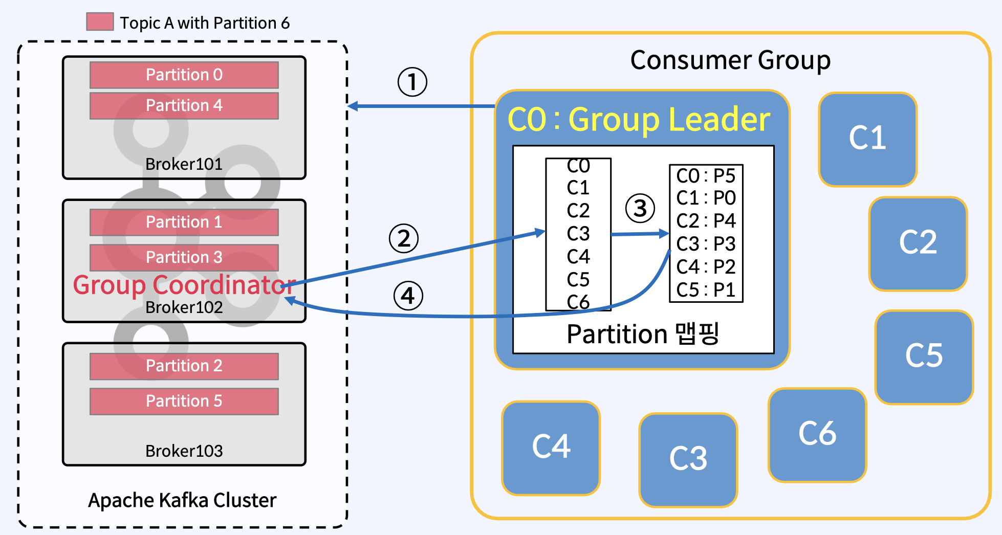 - 여기서 Transaction Coordinator는 내부 __consumer_offsets Topic에서 이 Consumer Group에 대한 TopicPartition을 추론한다.