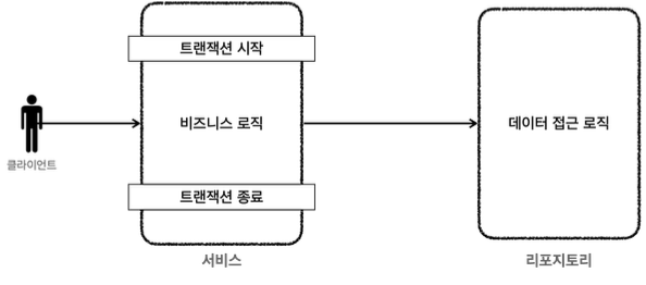 - 하지만, 여전히 서비스 로직에 비즈니스 로직뿐만 아니라 트랜잭션을 처리하는 기술인 트랜잭션 템플릿 코드가 함께 포함되어 있다.