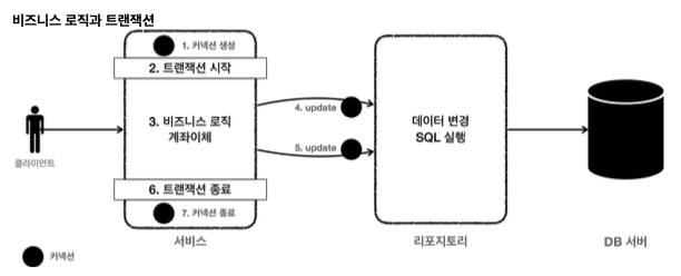 - 트랜잭션은 비즈니스 로직이 있는 서비스 계층에서 시작하는 것이 좋다.