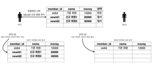 - 비즈니스 로직이 끝나고 트랜잭션을 종료한다. 트랜잭션은 커밋하거나 롤백하면 종료된다.