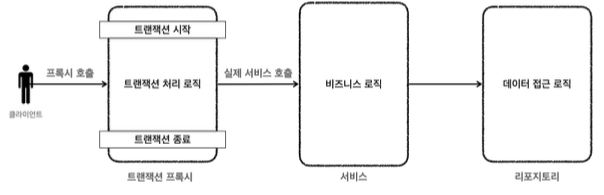 프록시를 사용하면 트랜잭션을 처리하는 객체와 비즈니스 로직을 처리하는 서비스 객체를 명확하게 분리할 수 있다.