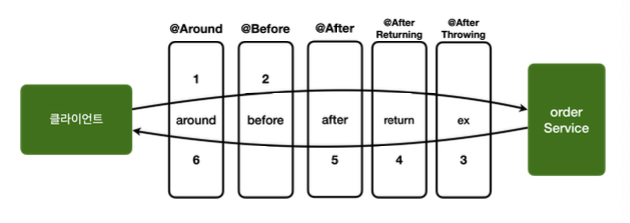 Around, Before, After와 같은 다양한 종류의 어드바이스가 있다.