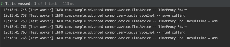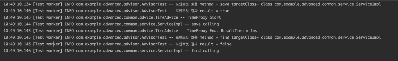 - 기대하지 않은 로그들이 막 올라온다. 그 이유는 지금 사용한 포인트컷이 단순히 메서드 이름에 "request*", "order*", "save*"만 포함되어 있으면 매칭 된다고 판단하기 때문이다.