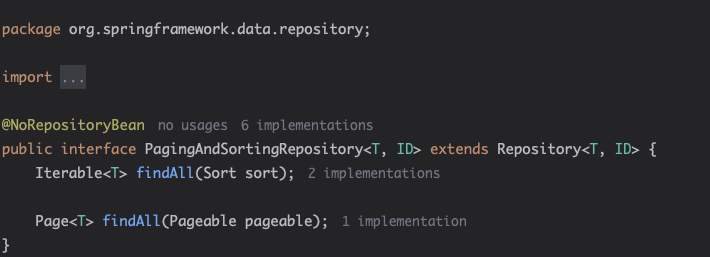 이 위로 올라가서 PagingAndSortingRepository 올라가보면 패키지 명이 다음과 같다.