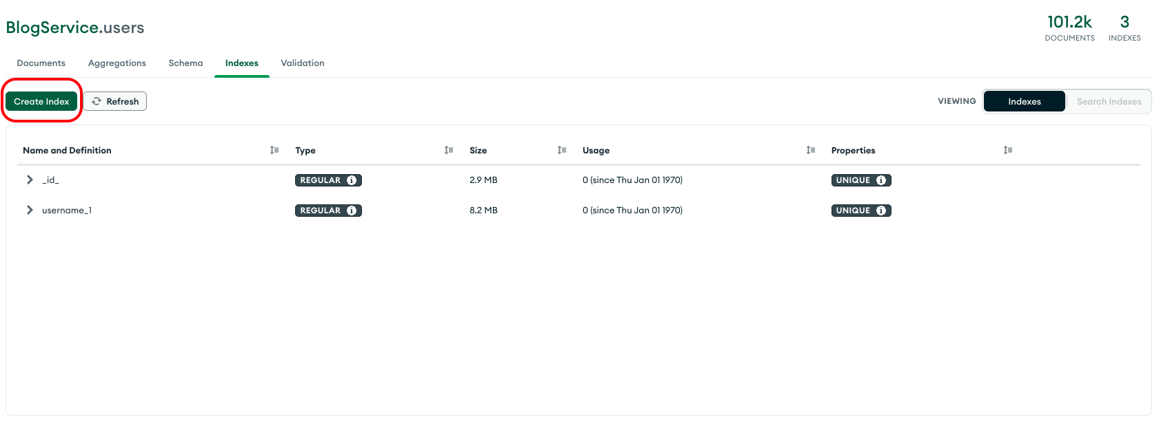 101200개의 Documents의 토탈 사이즈보다, Index 5개의 토탈 사이즈가 더 크다. 이 정도로 인덱스는 크기를 많이 차지하는데 크기만 차지하는 문제를 가지고 있는것이 아니고 이렇게 되면 인덱스를 통해 READ하는 속도는 낮출 수 있을지 몰라도 CREATE하는 속도가 올라간다. 데이터를 만들 때 역시 인덱스를 걸어주기 때문이고 인덱스가 많아지면 많아질수록 구조는 복잡해지기 때문이다.